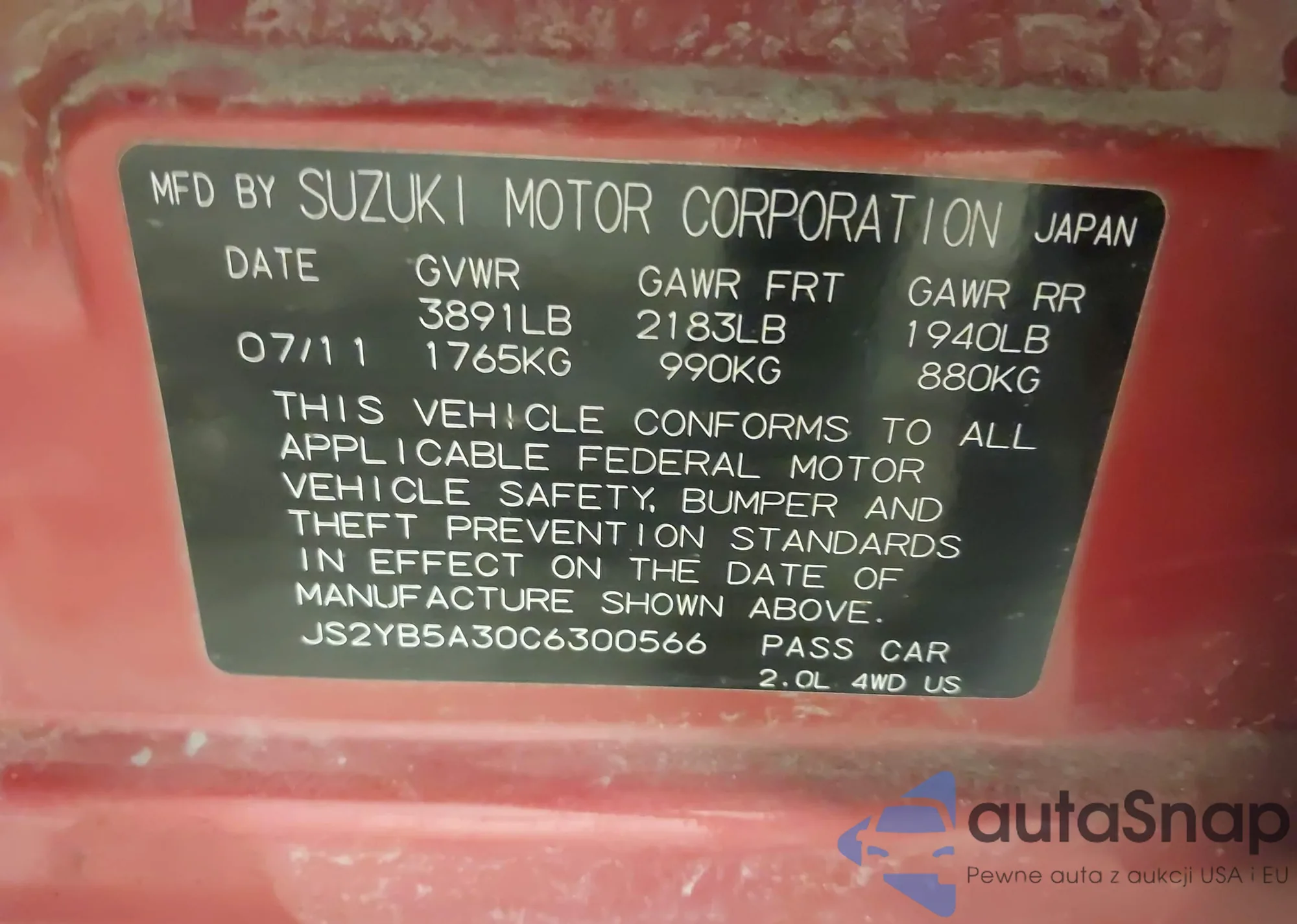 • VIN JS2YB5A30C6300566
