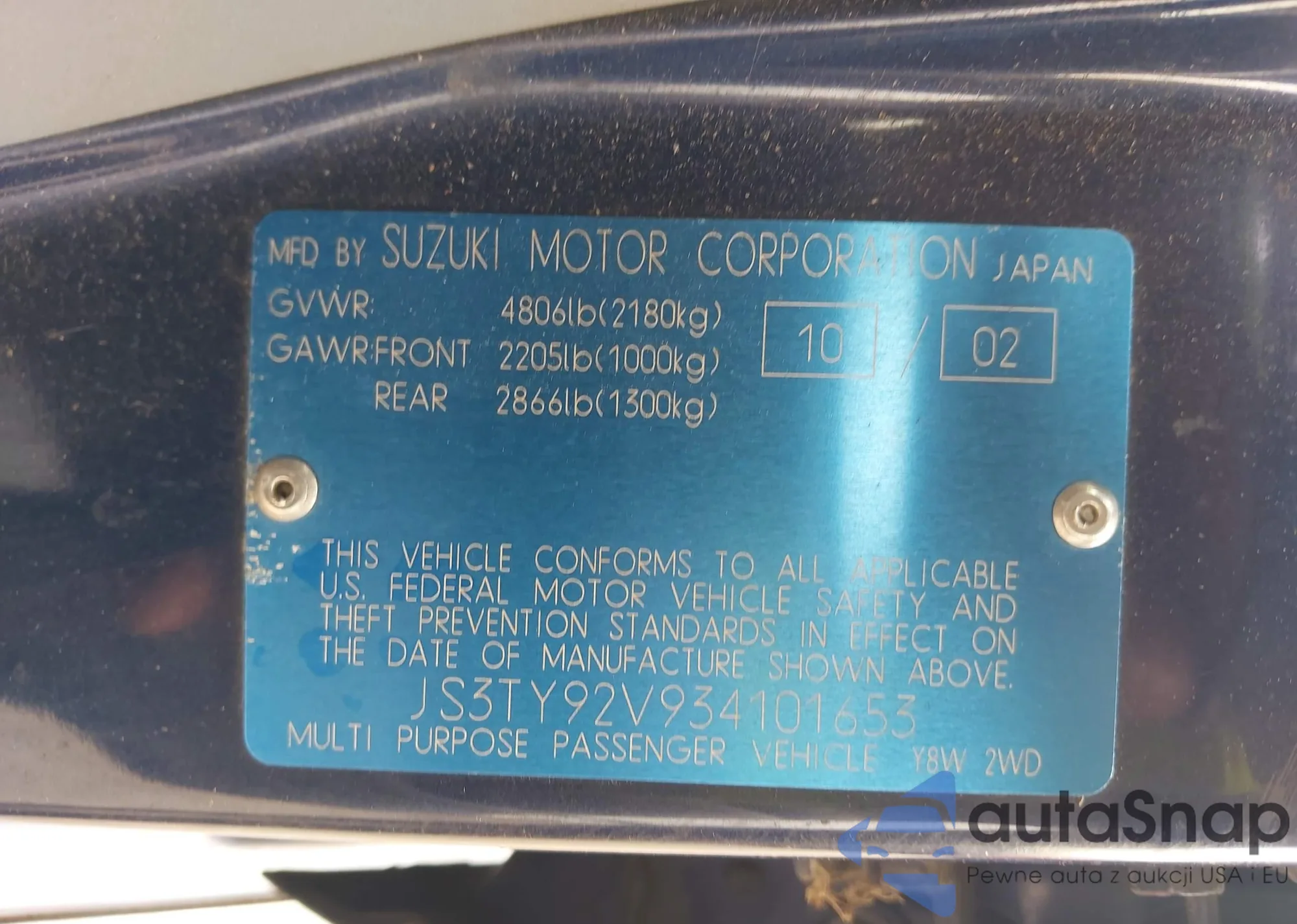 • VIN JS3TY92V934101653