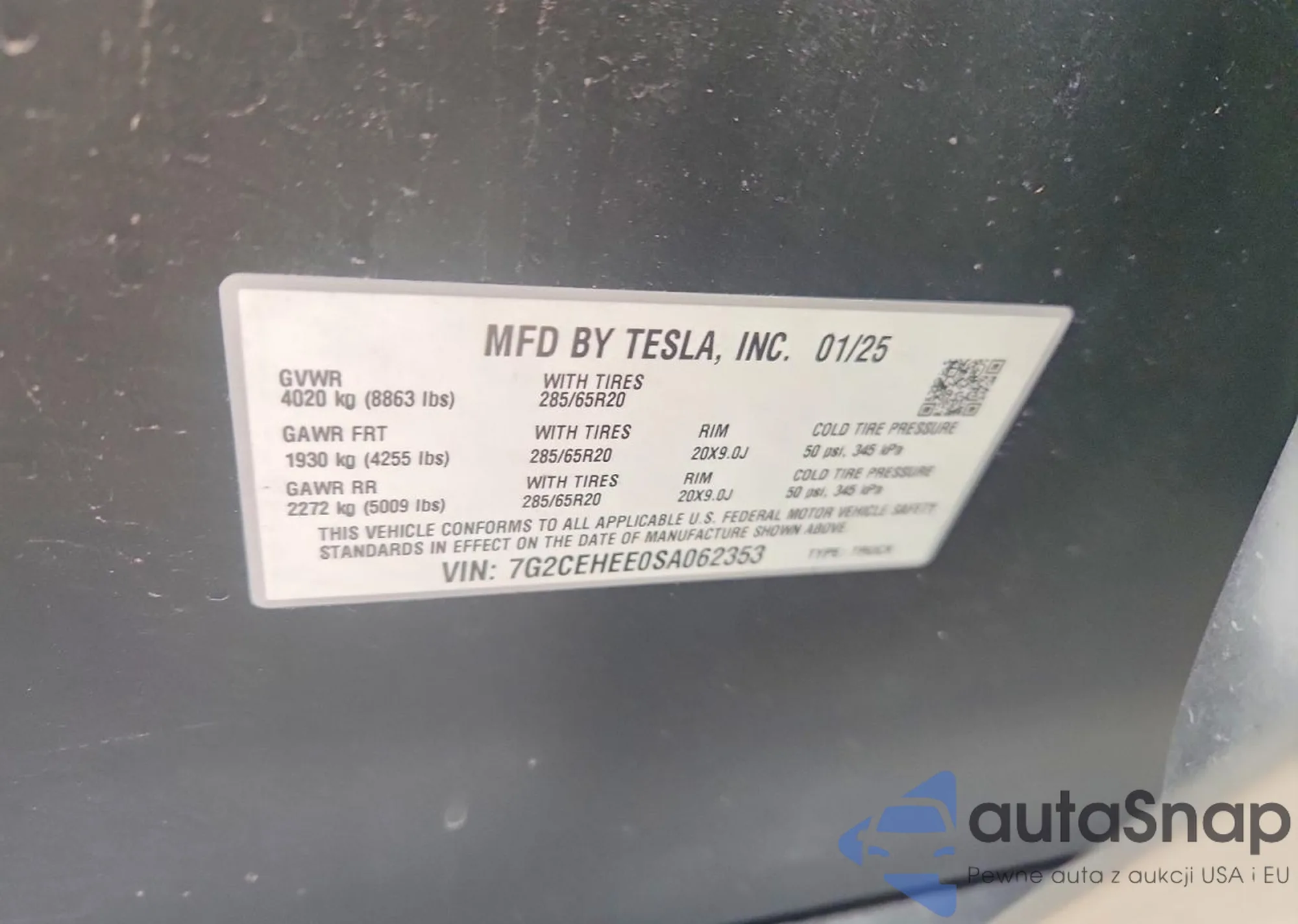 2025 Tesla Cybertruck from USA, damaged, VIN 7G2CEHEE0SA062353