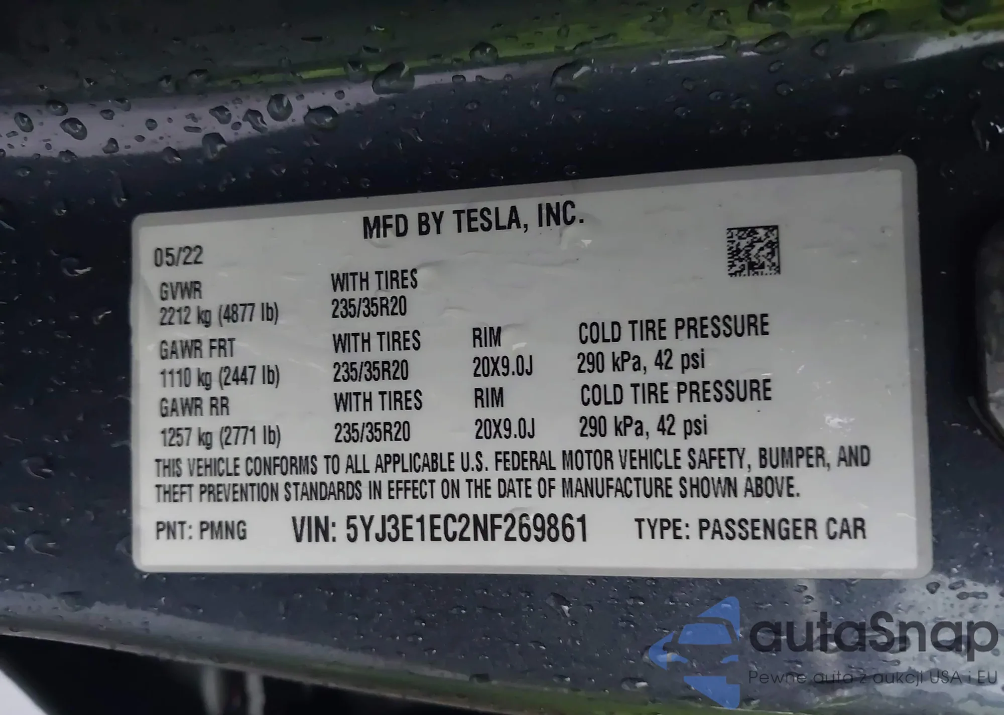 • VIN 5YJ3E1EC2NF269861