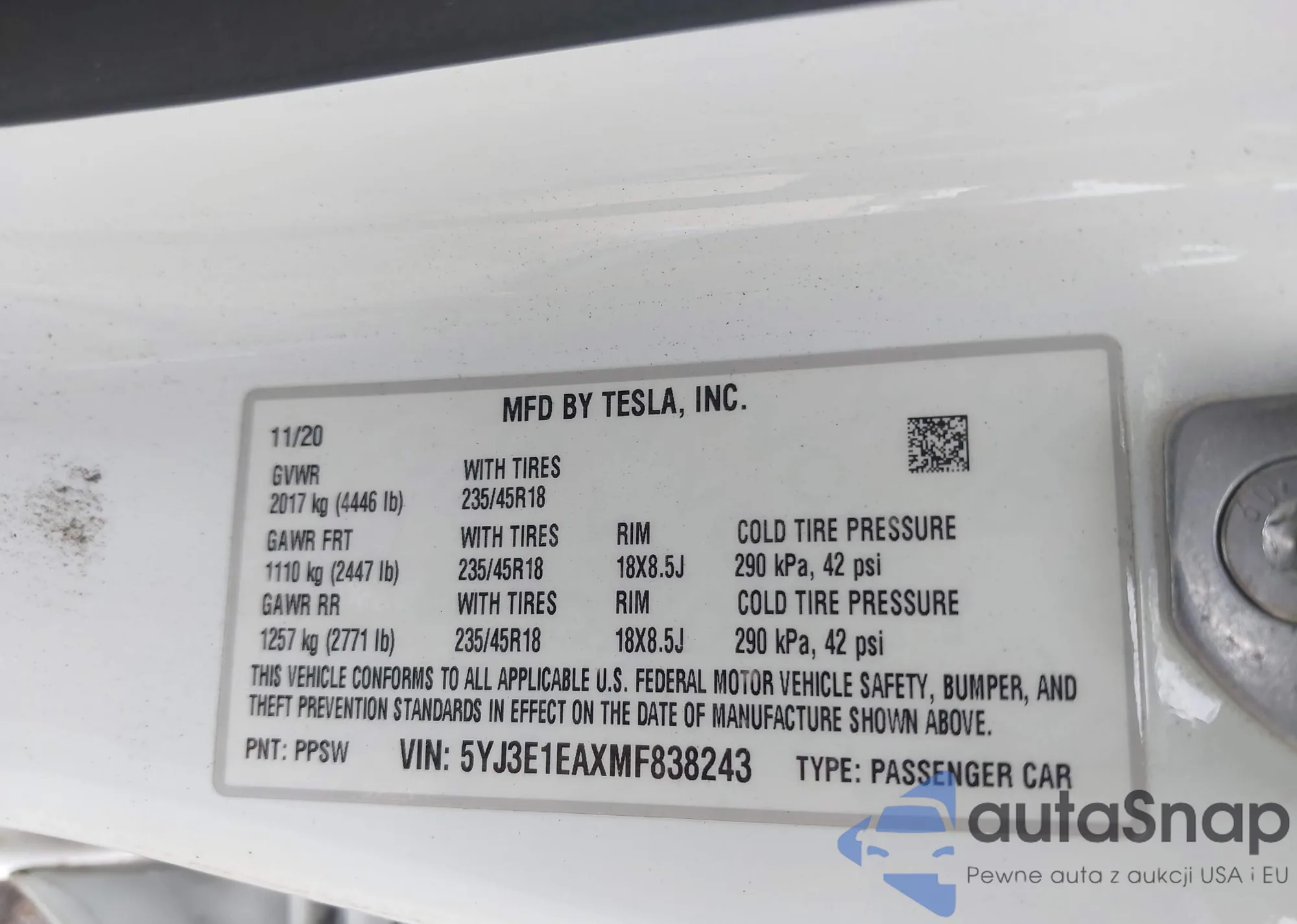 • VIN 5YJ3E1EAXMF838243