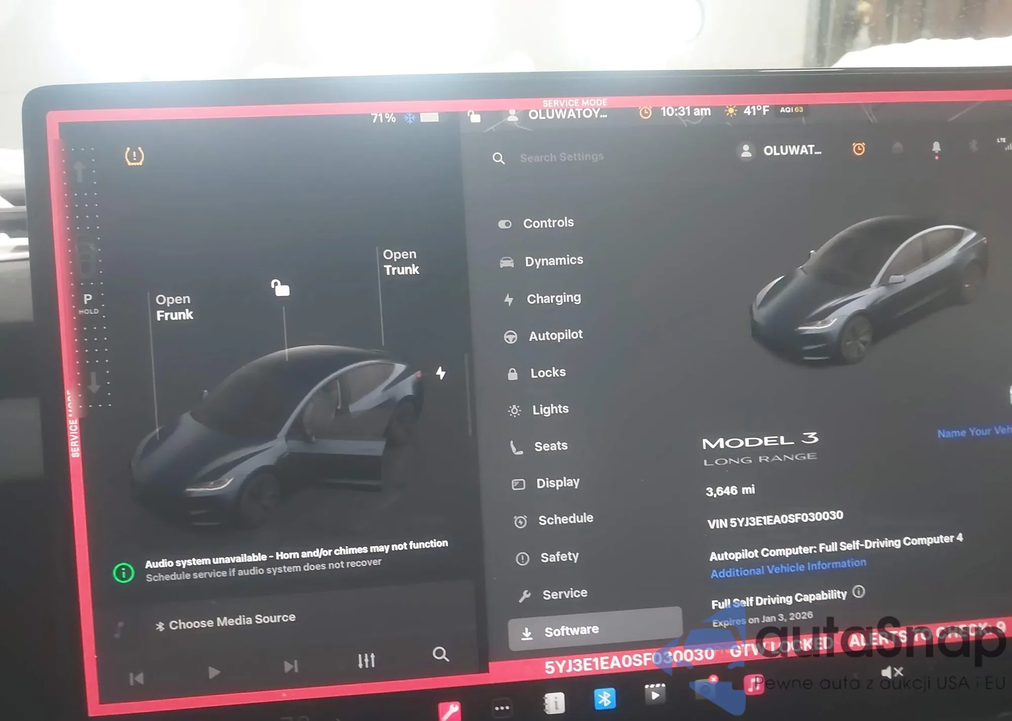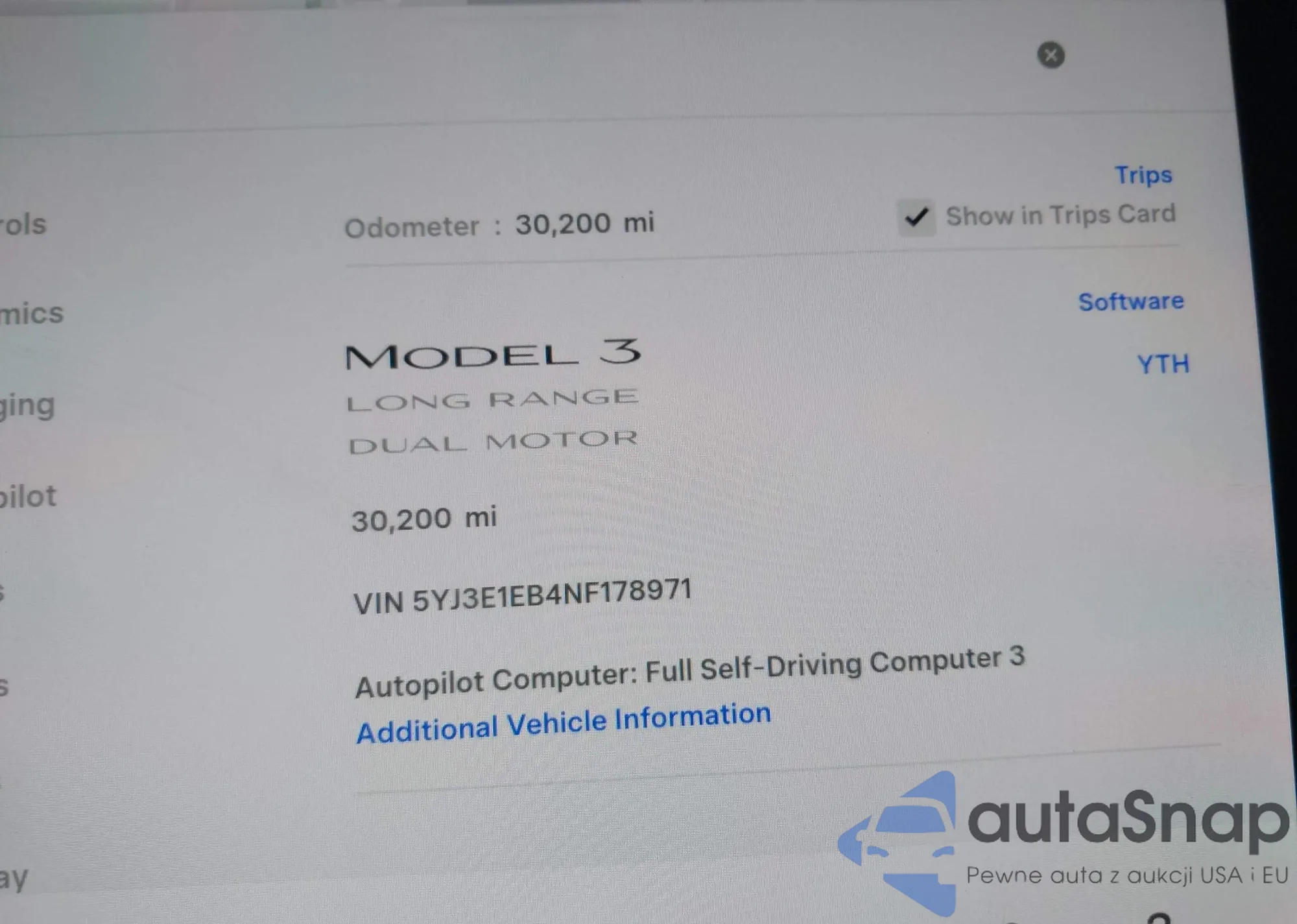 • VIN 5YJ3E1EA0SF030030