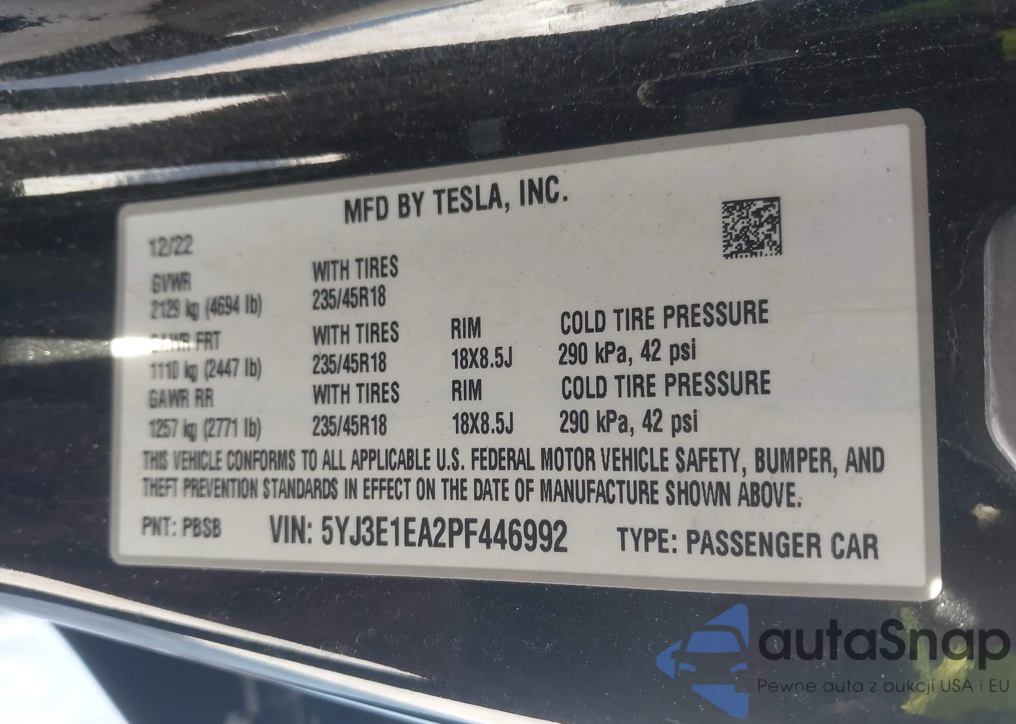 • VIN 5YJ3E1EA2PF446992