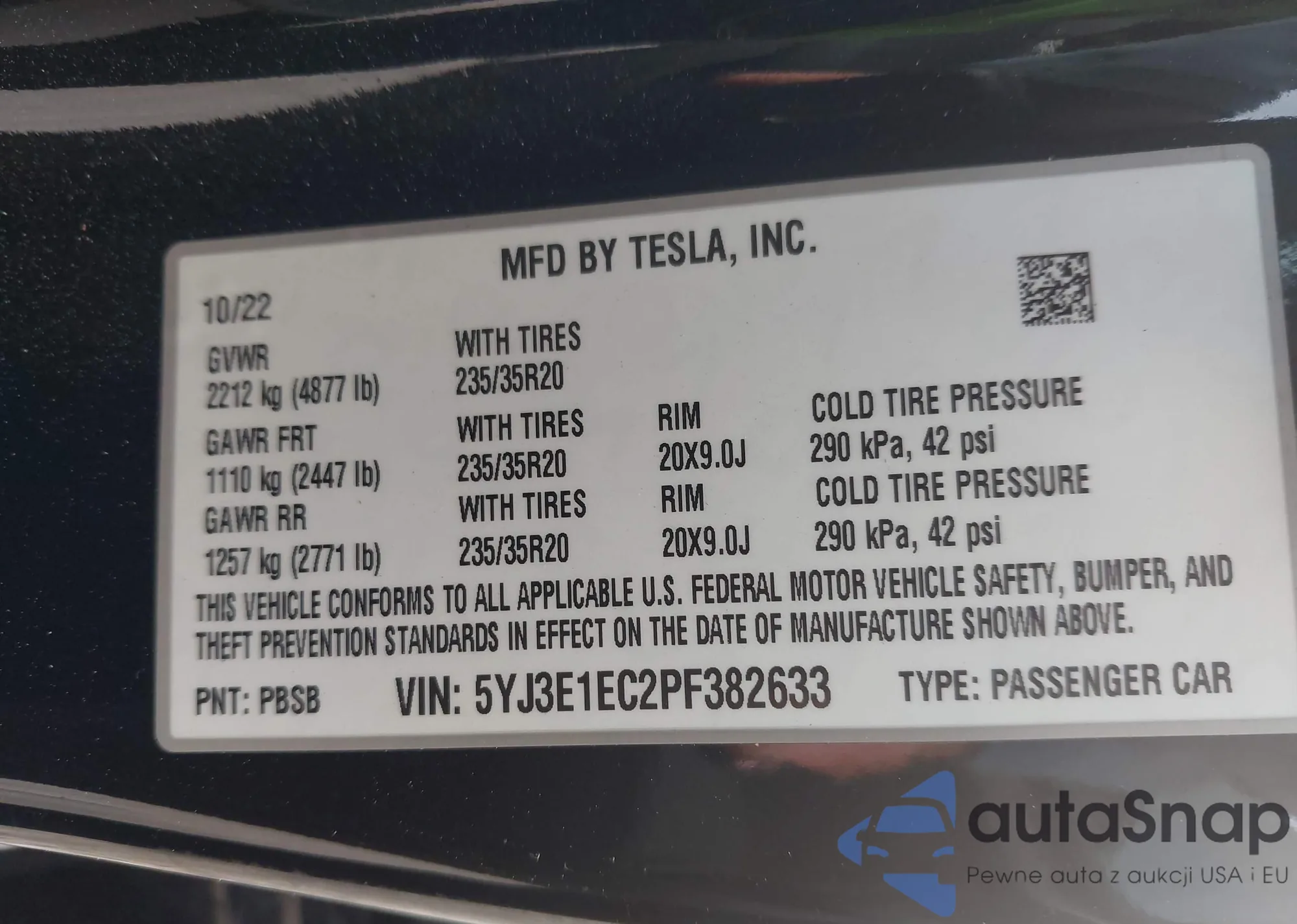 • VIN 5YJ3E1EC2PF382633