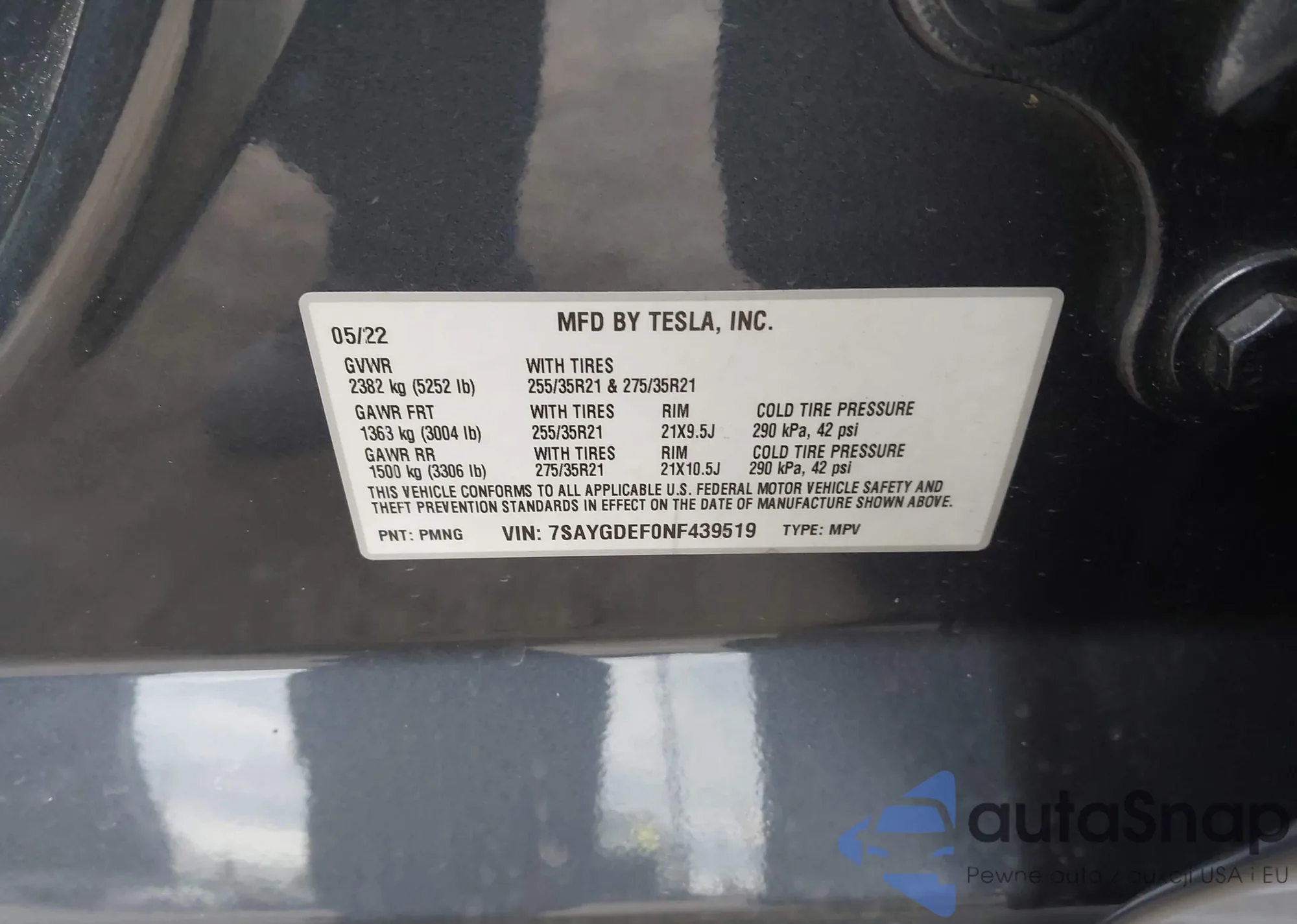 • VIN 7SAYGDEF0NF439519