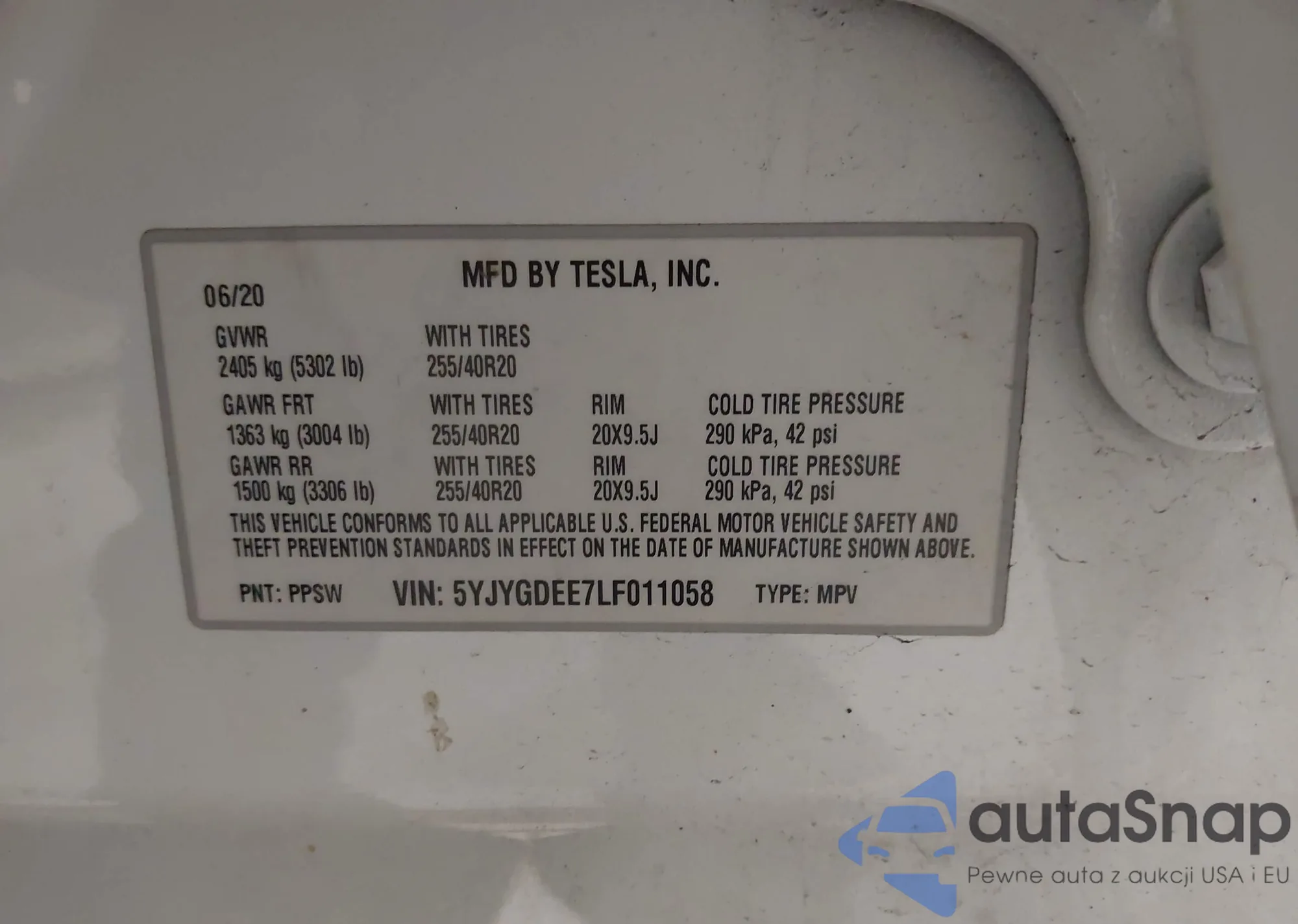 LOT: 43722670 VIN: 5YJYGDEE0LF048906