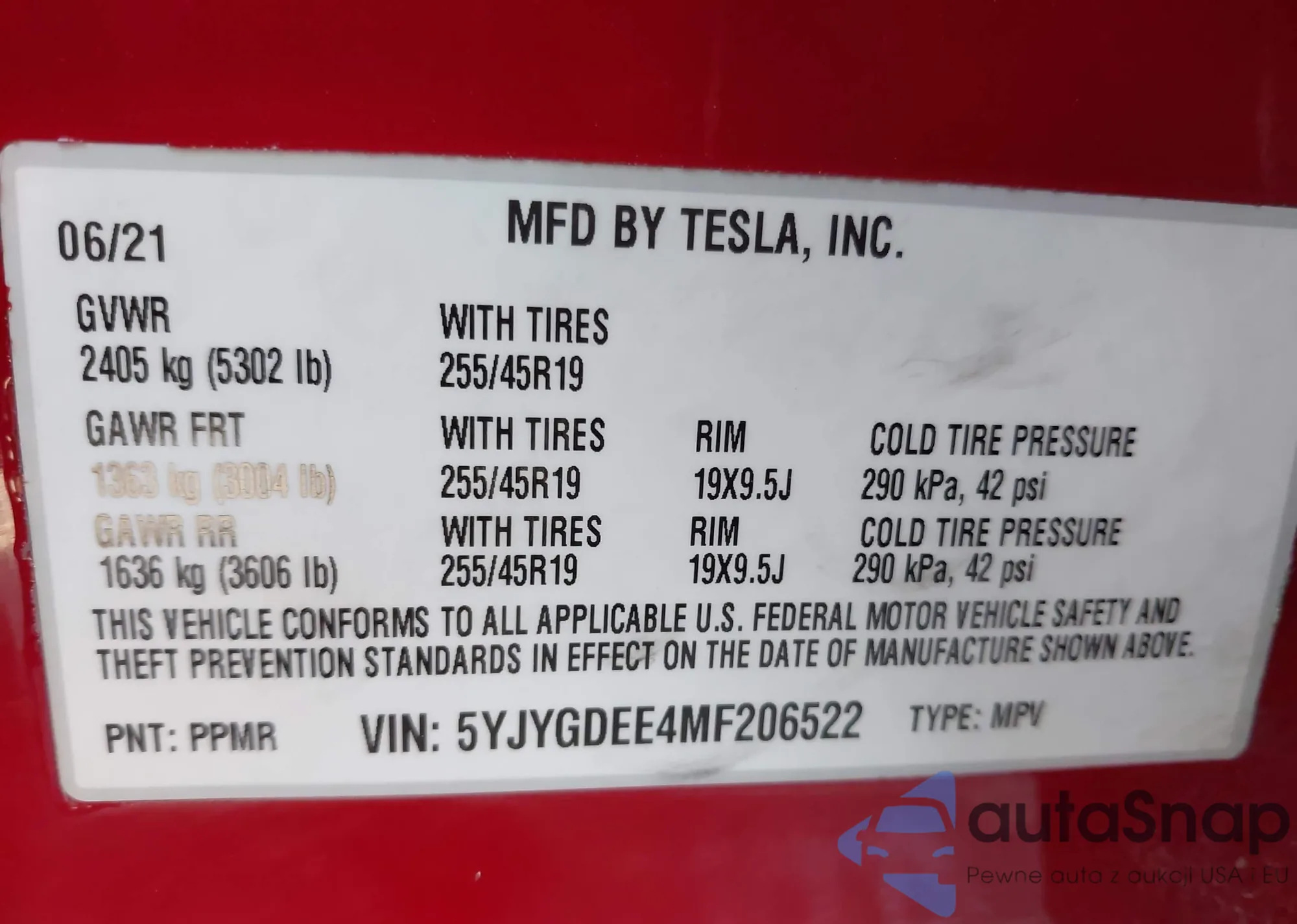 • VIN 5YJYGDEE4MF206522