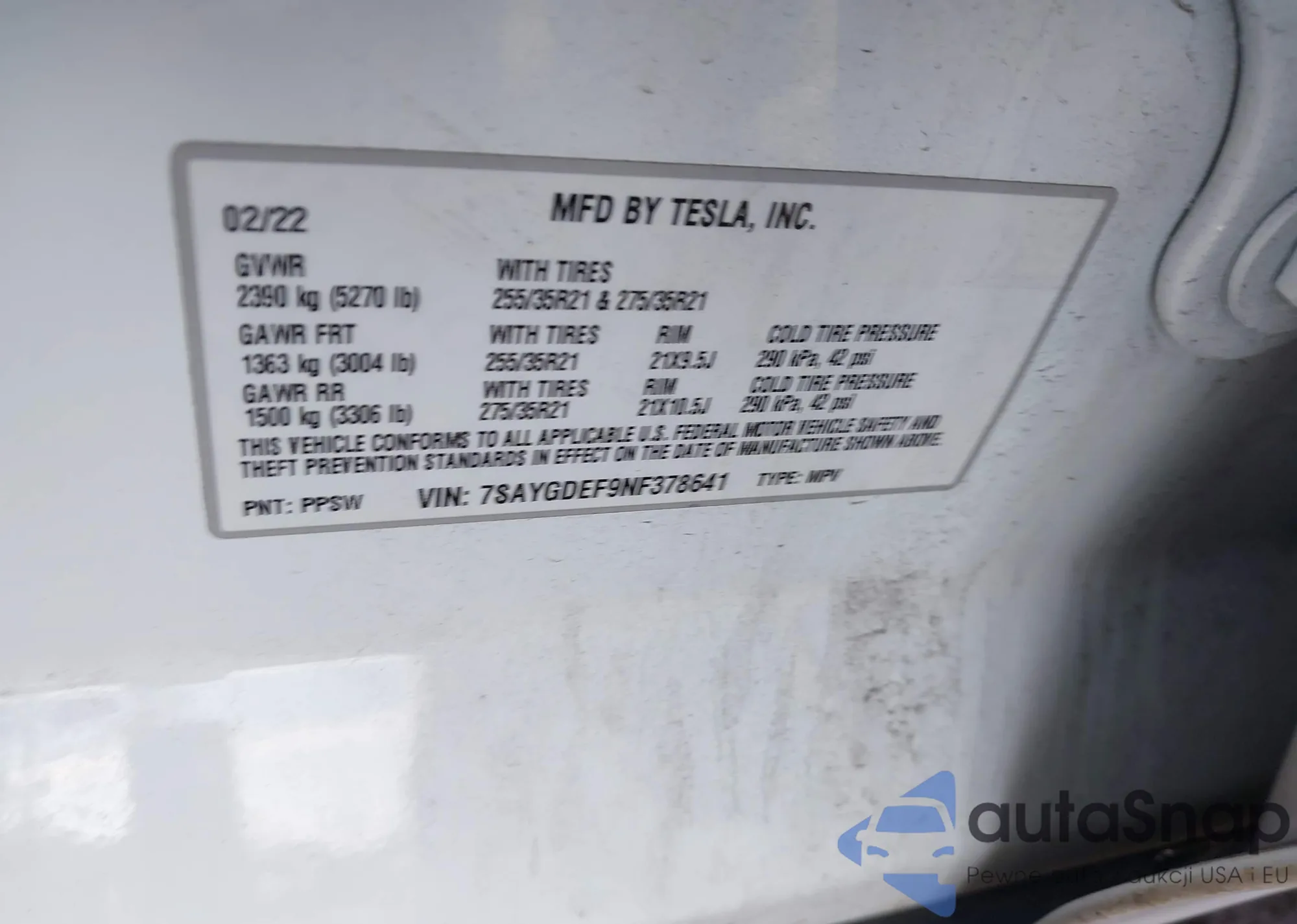 • VIN 7SAYGDEF9NF378641