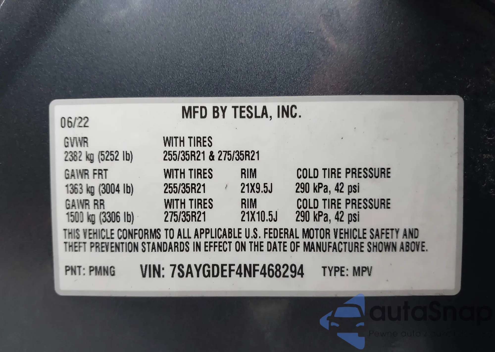 • VIN 7SAYGDEF4NF468294