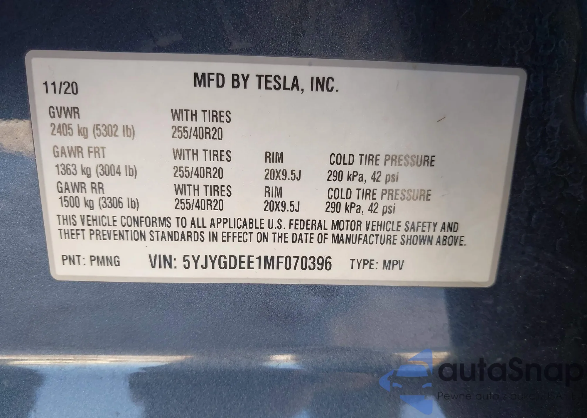 • VIN 5YJYGDEDXMF103483
