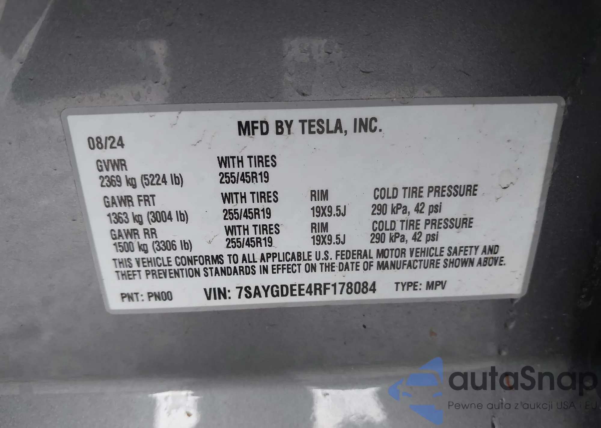 • VIN 5YJ3E1EA2NF241329