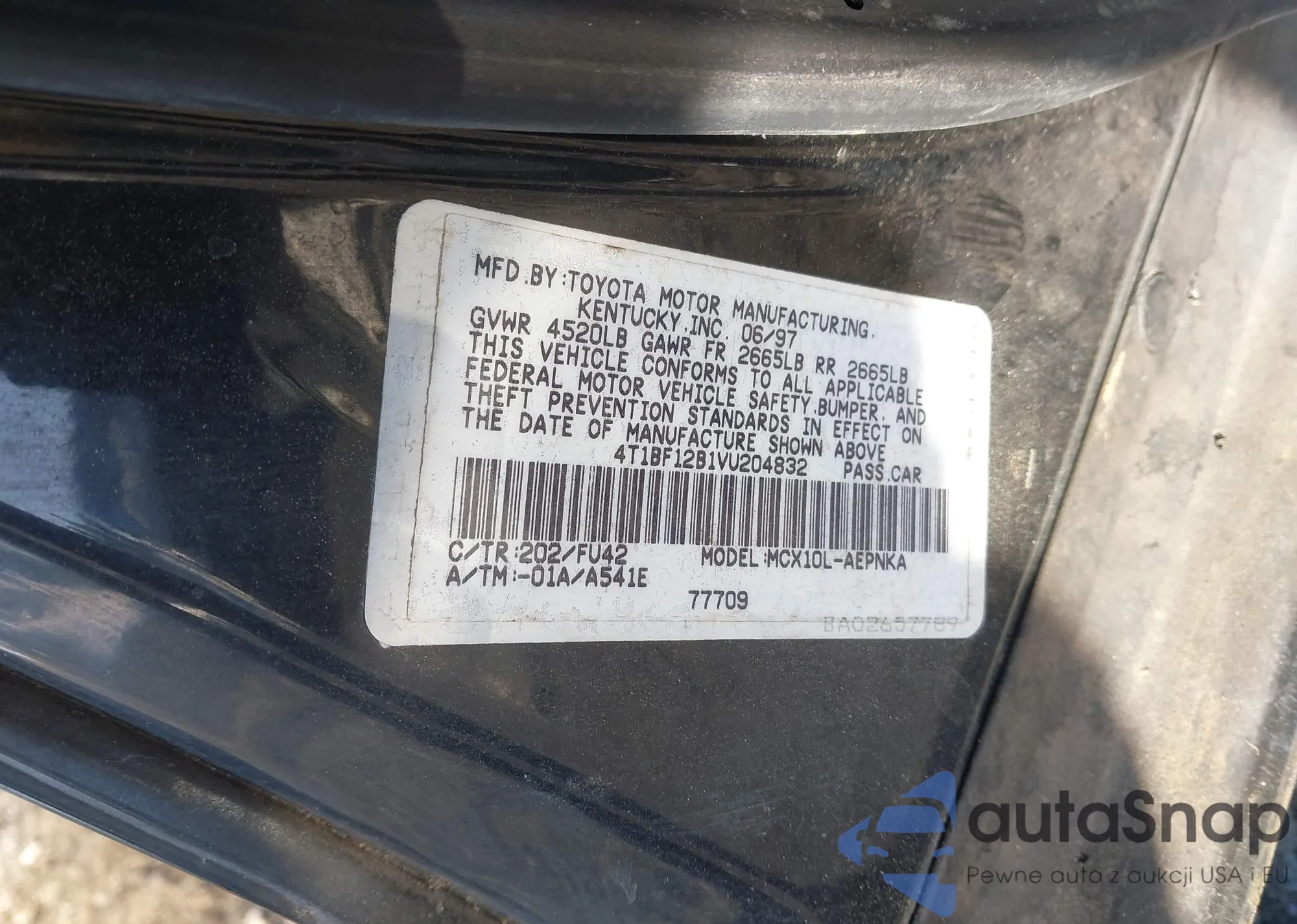 • VIN 4T1BF12B1VU204832