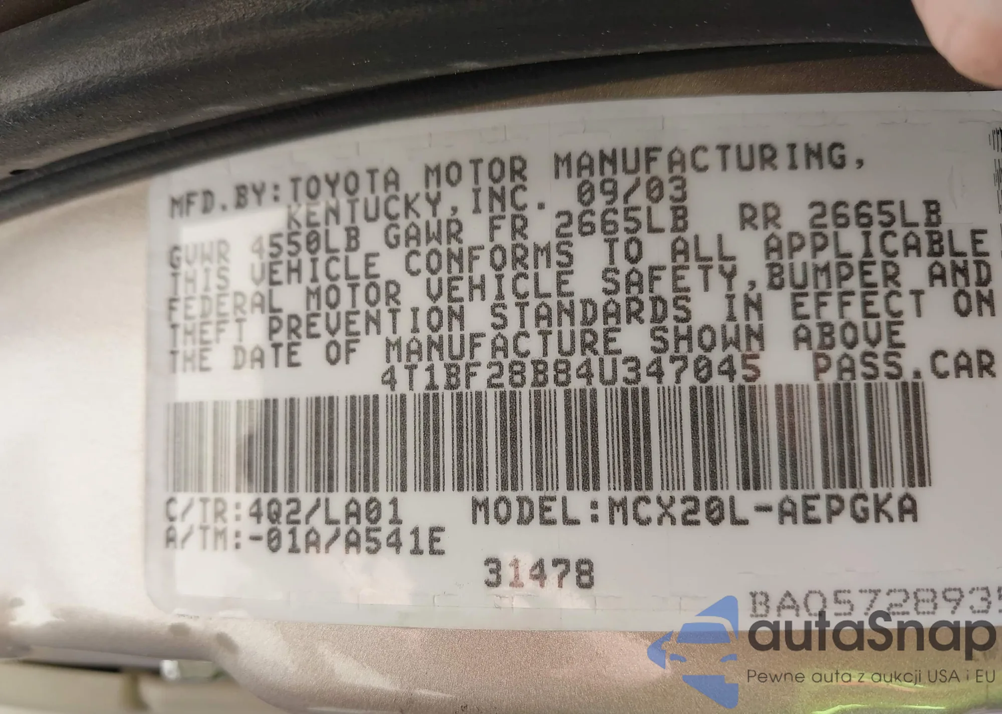 LOT: 44005082 VIN: 4T1BF28B84U347045