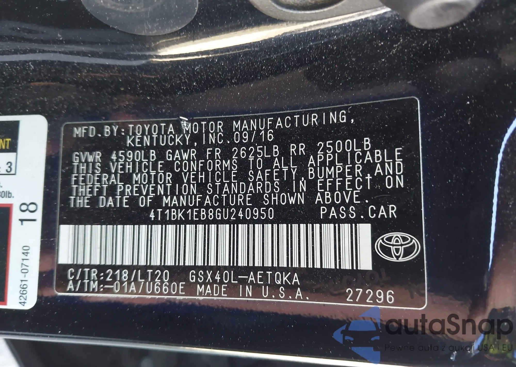 • VIN 4T1BK1EB8GU240950