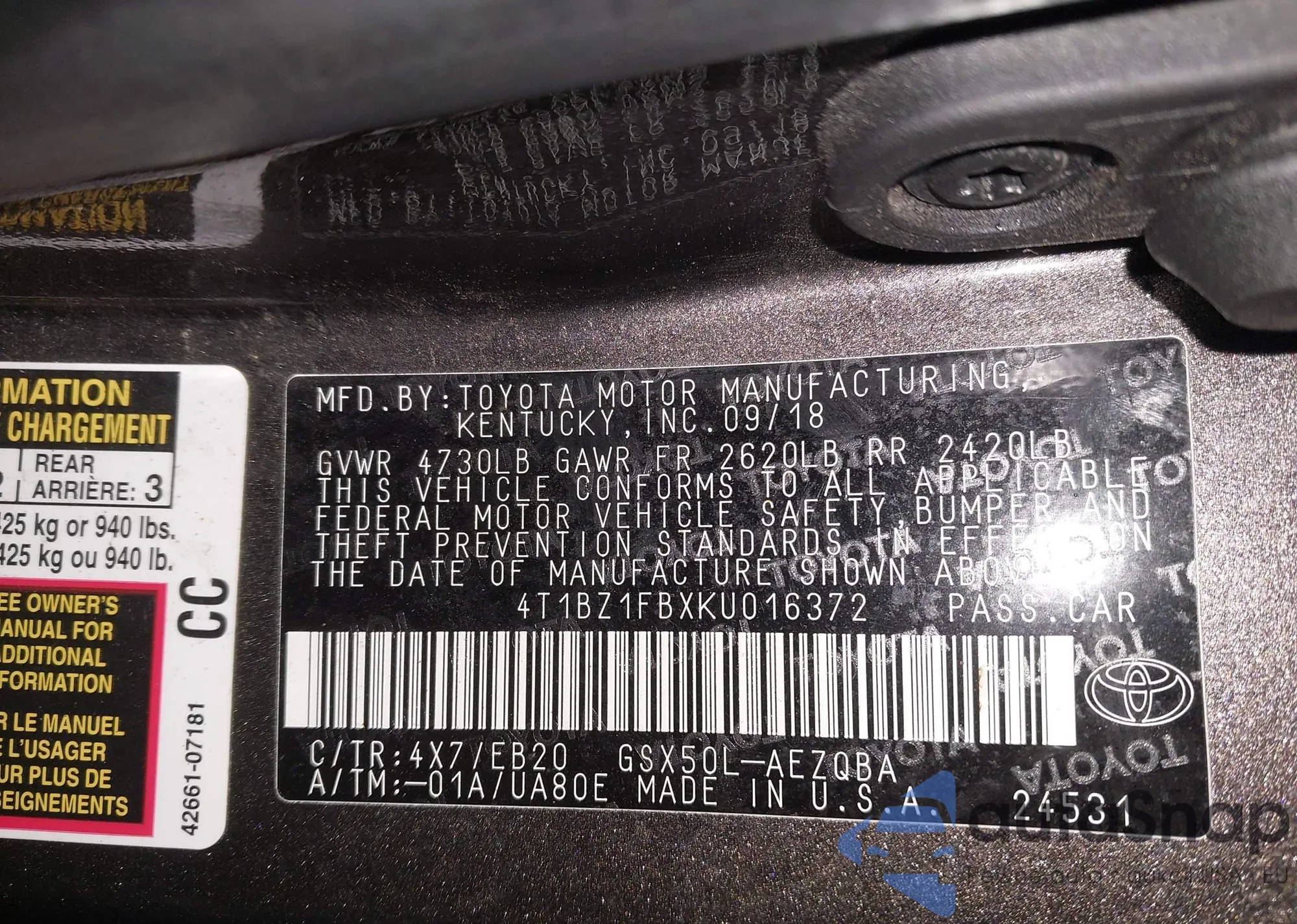 • VIN 4T1BZ1FB4KU024452