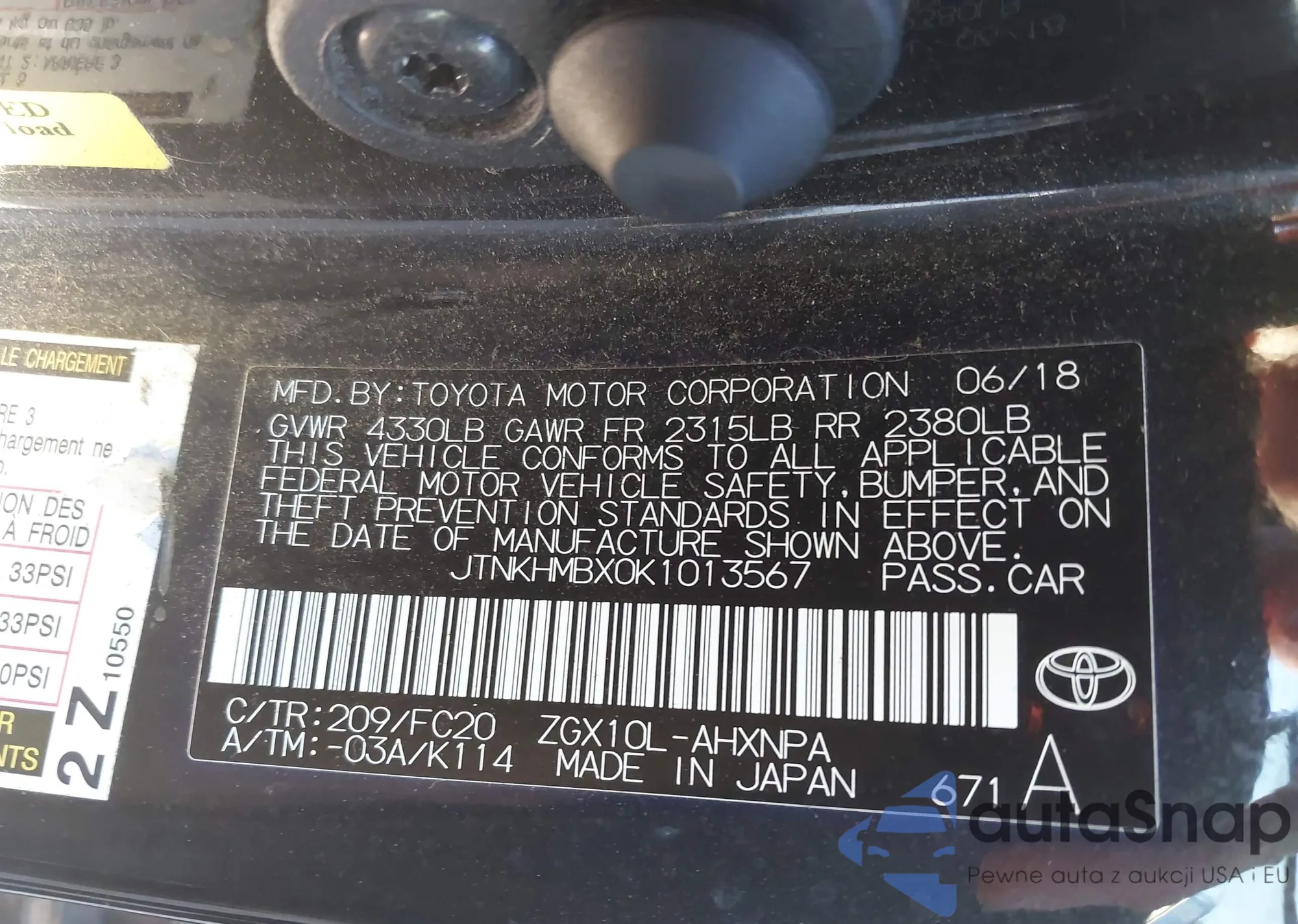 • VIN JTNKHMBX0K1013567