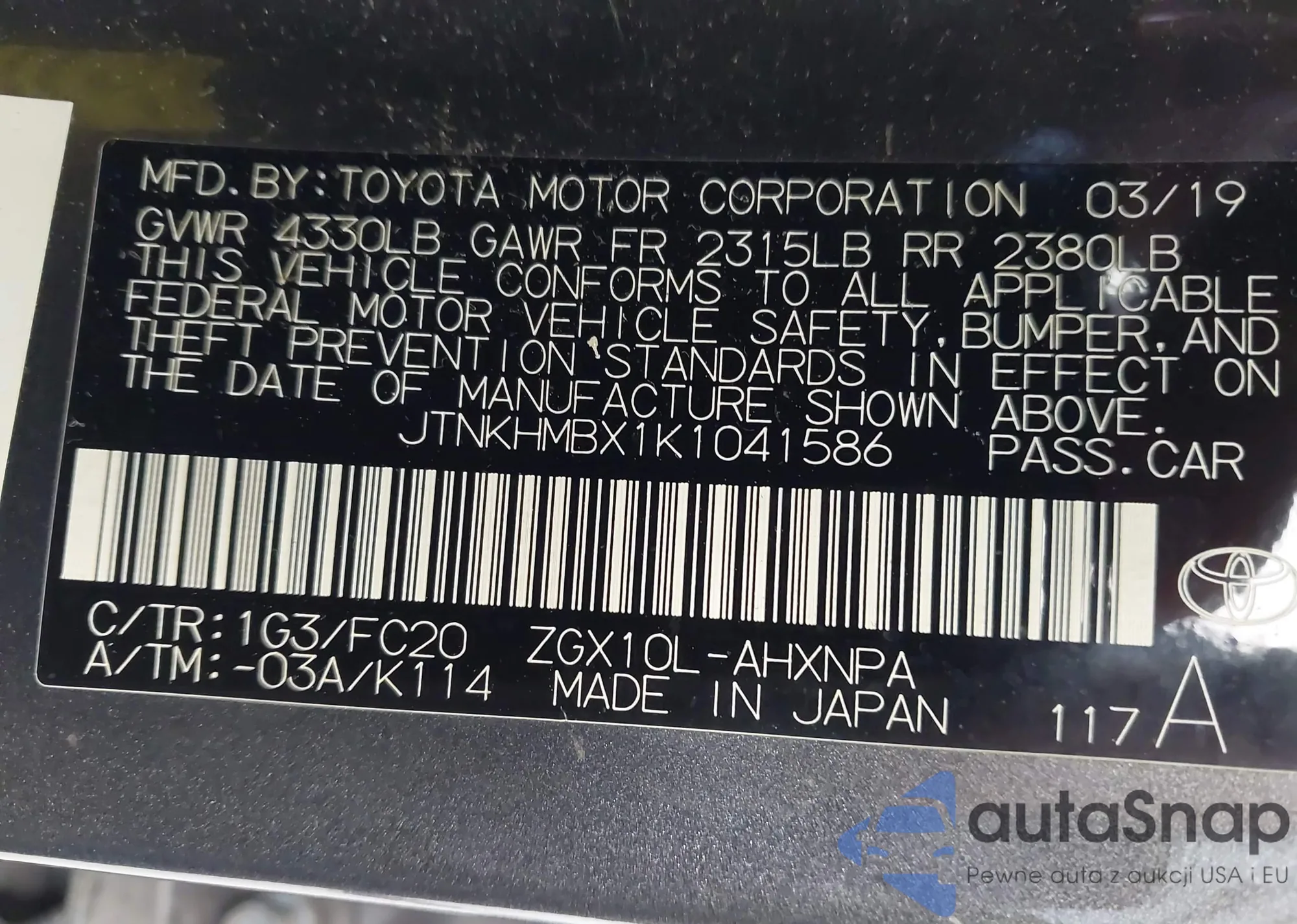 • VIN JTNKHMBX4K1047947