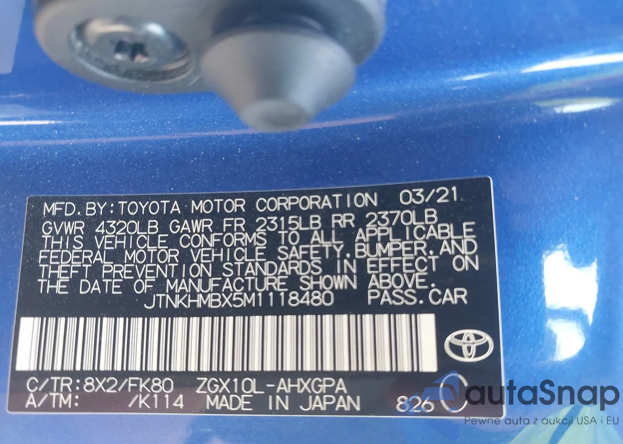 • VIN JTNKHMBX5M1118480