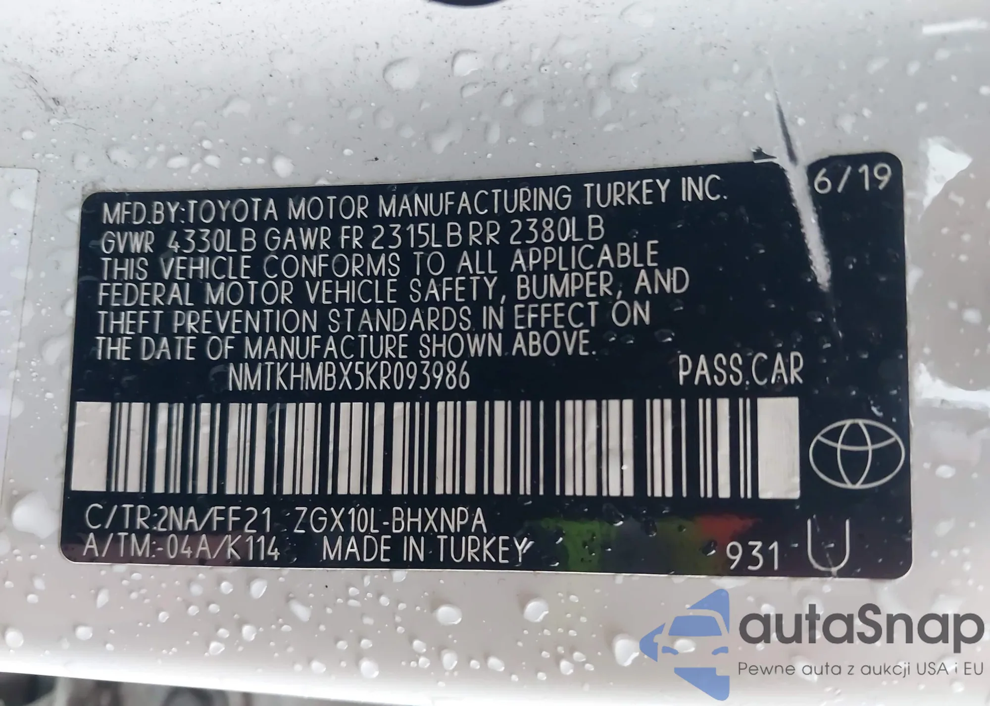 • VIN NMTKHMBX5KR093986