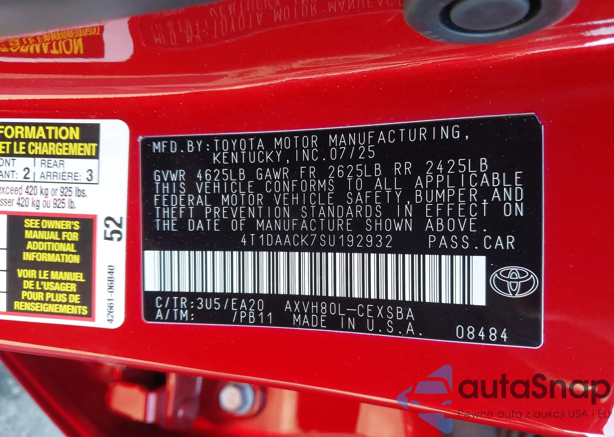 • VIN 4T1DAACK7SU192932