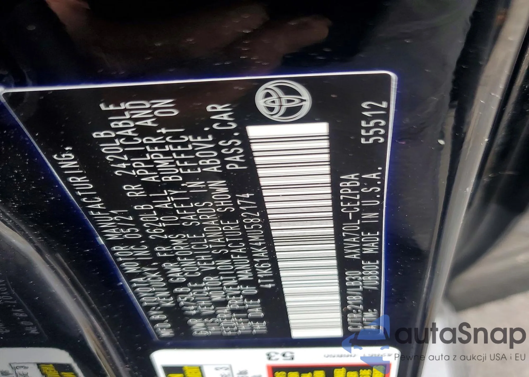 • VIN 4T1K61AK4MU582174
