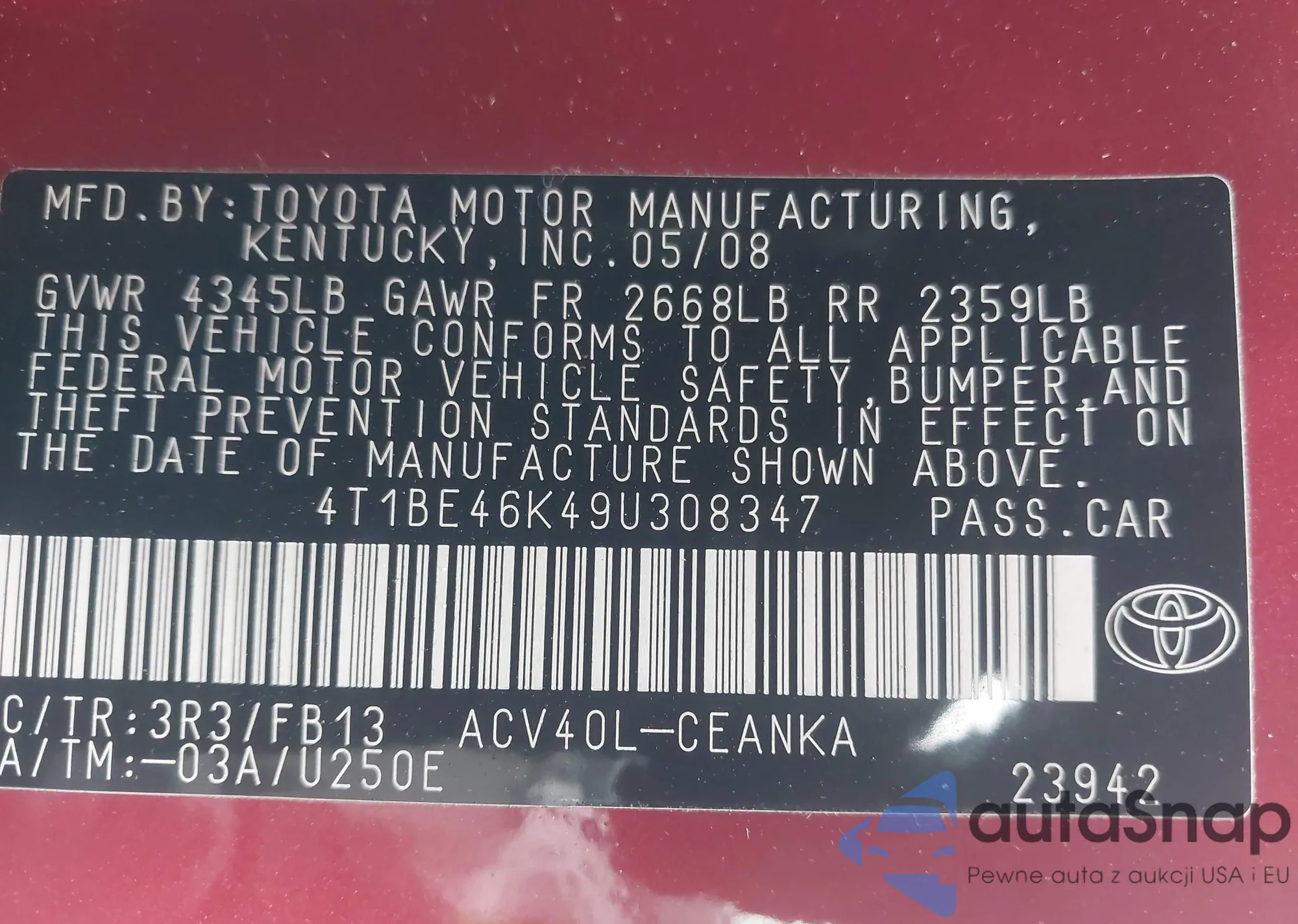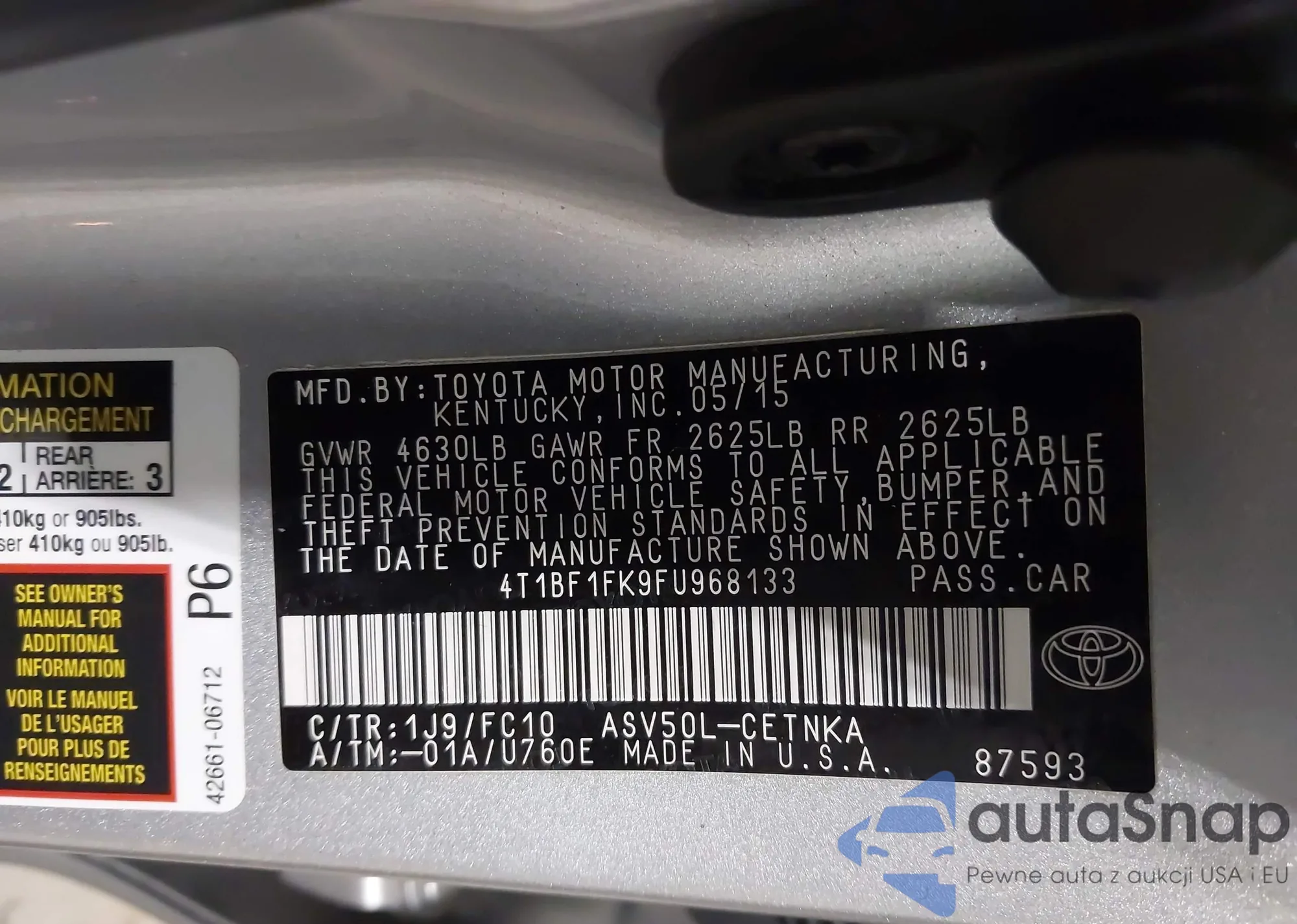• VIN 4T1BF1FK9FU968133
