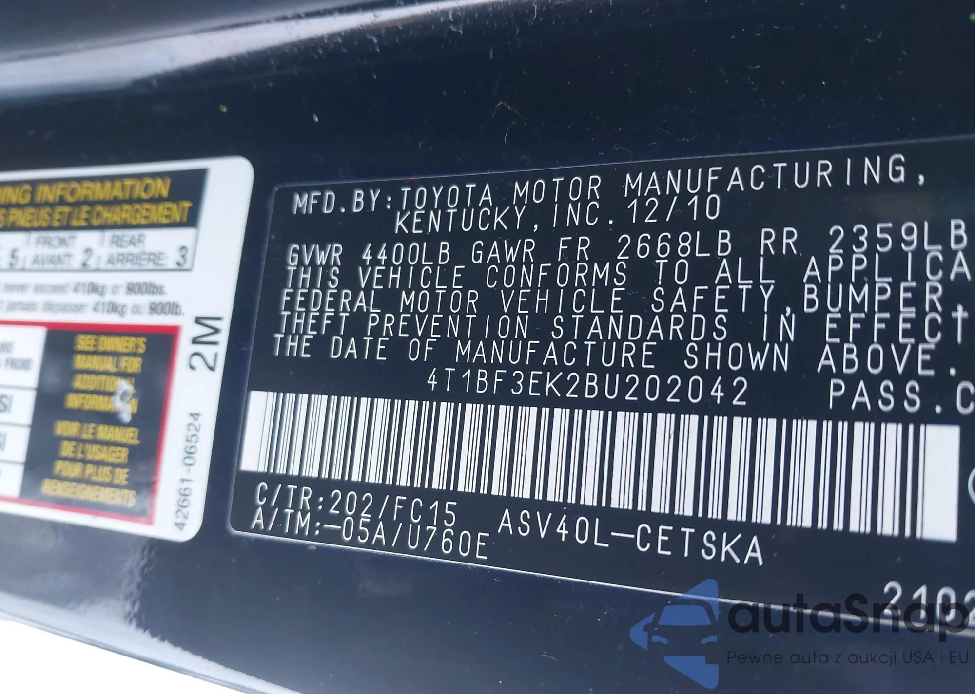 • VIN 4T1BF3EK2BU202042