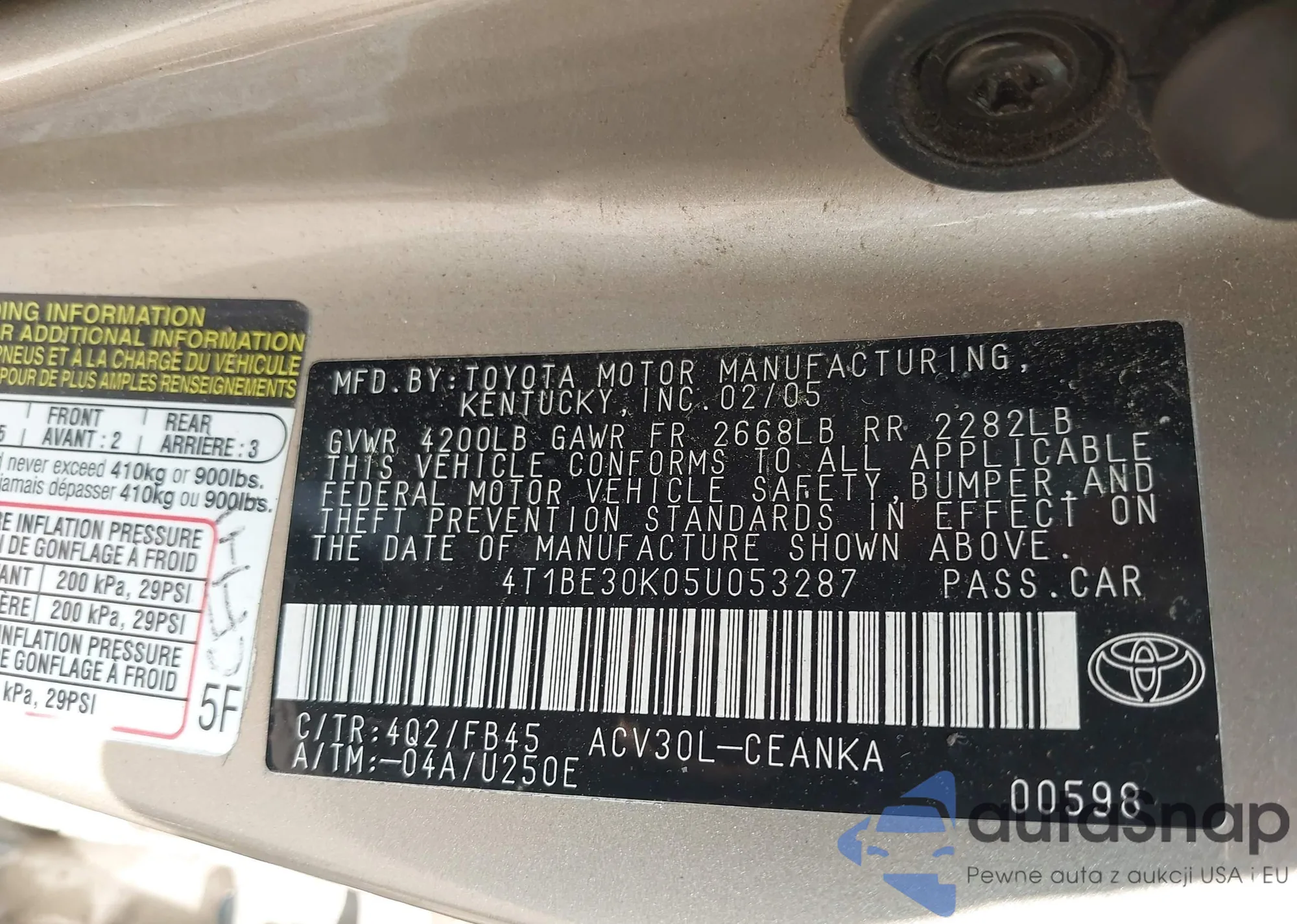 • VIN 4T1BE30KX5U970155