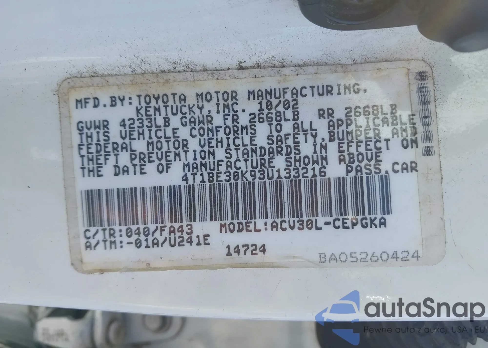 • VIN 4T1BE30K93U133216
