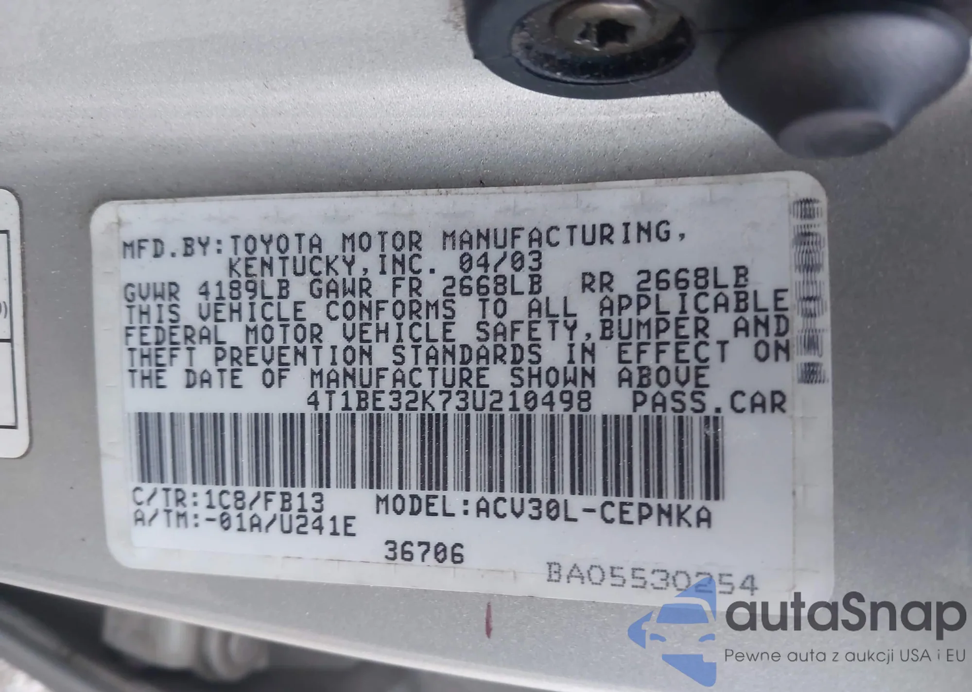 • VIN 4T1BE32K73U210498