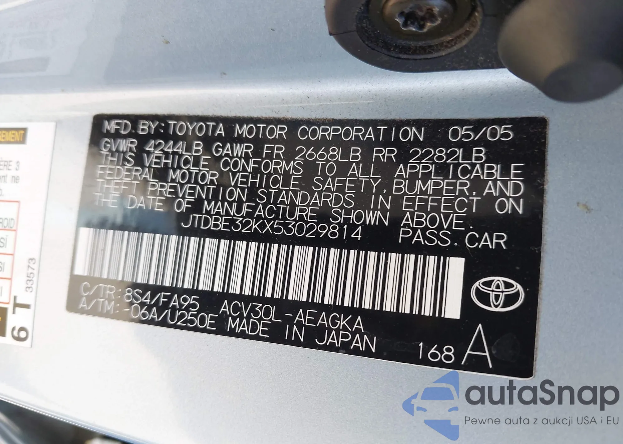 • VIN 4T1BE30KX5U973623