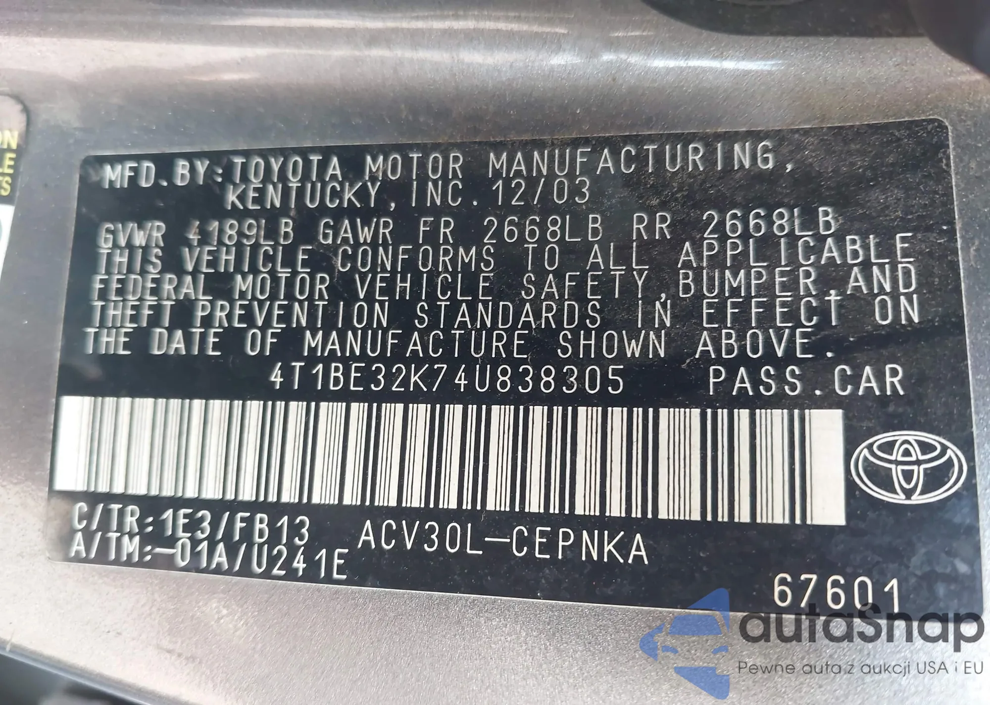 • VIN 4T1BE32K74U838305