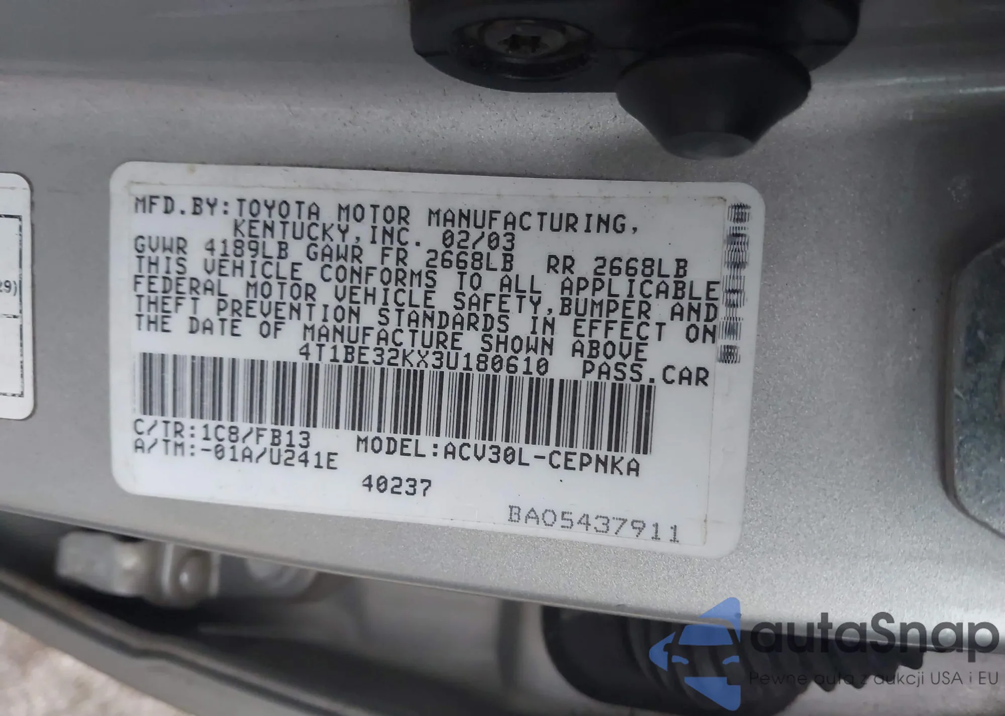 LOT: 43997921 VIN: 4T1BE32K73U231819