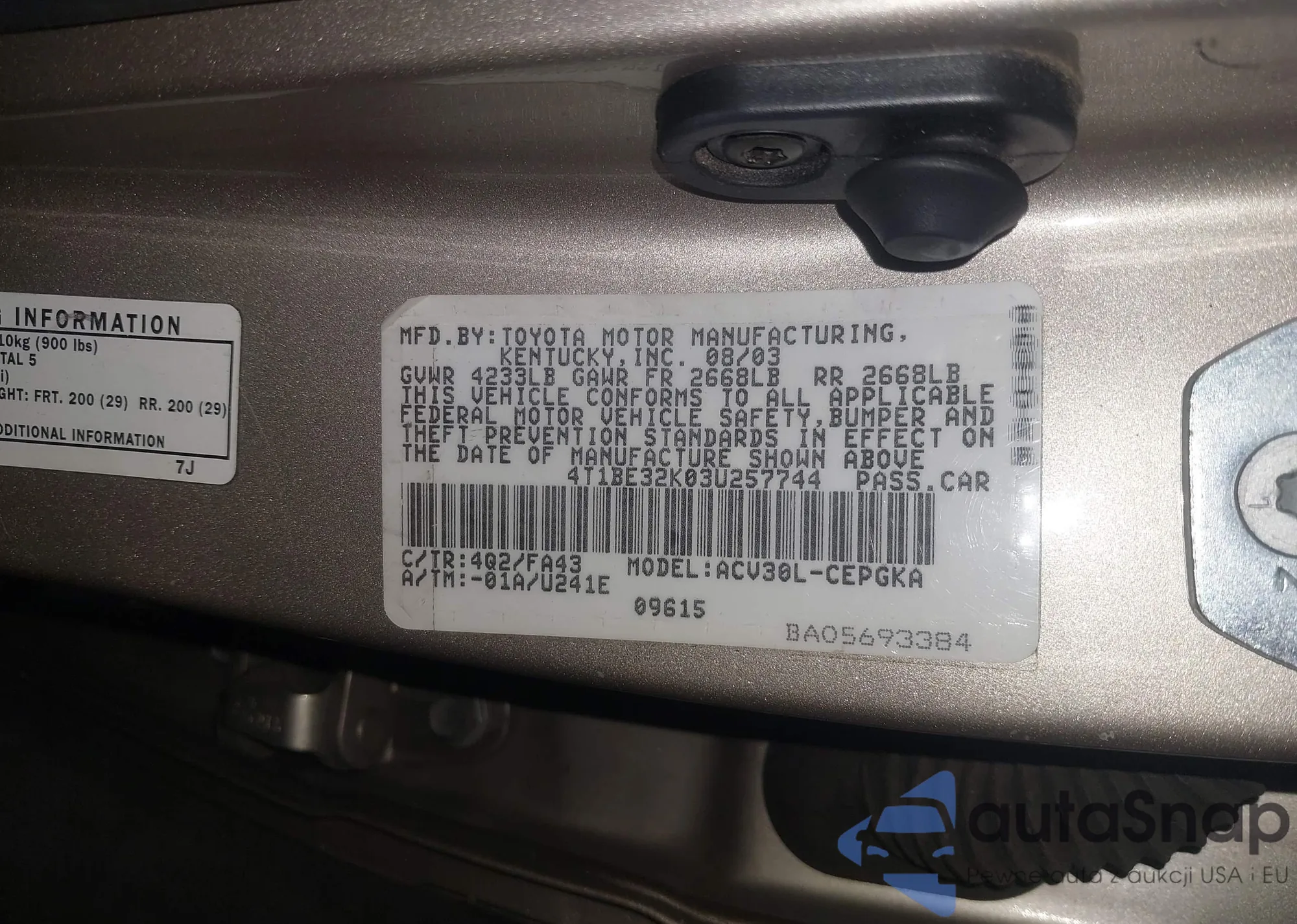 • VIN 4T1BE32K03U257744