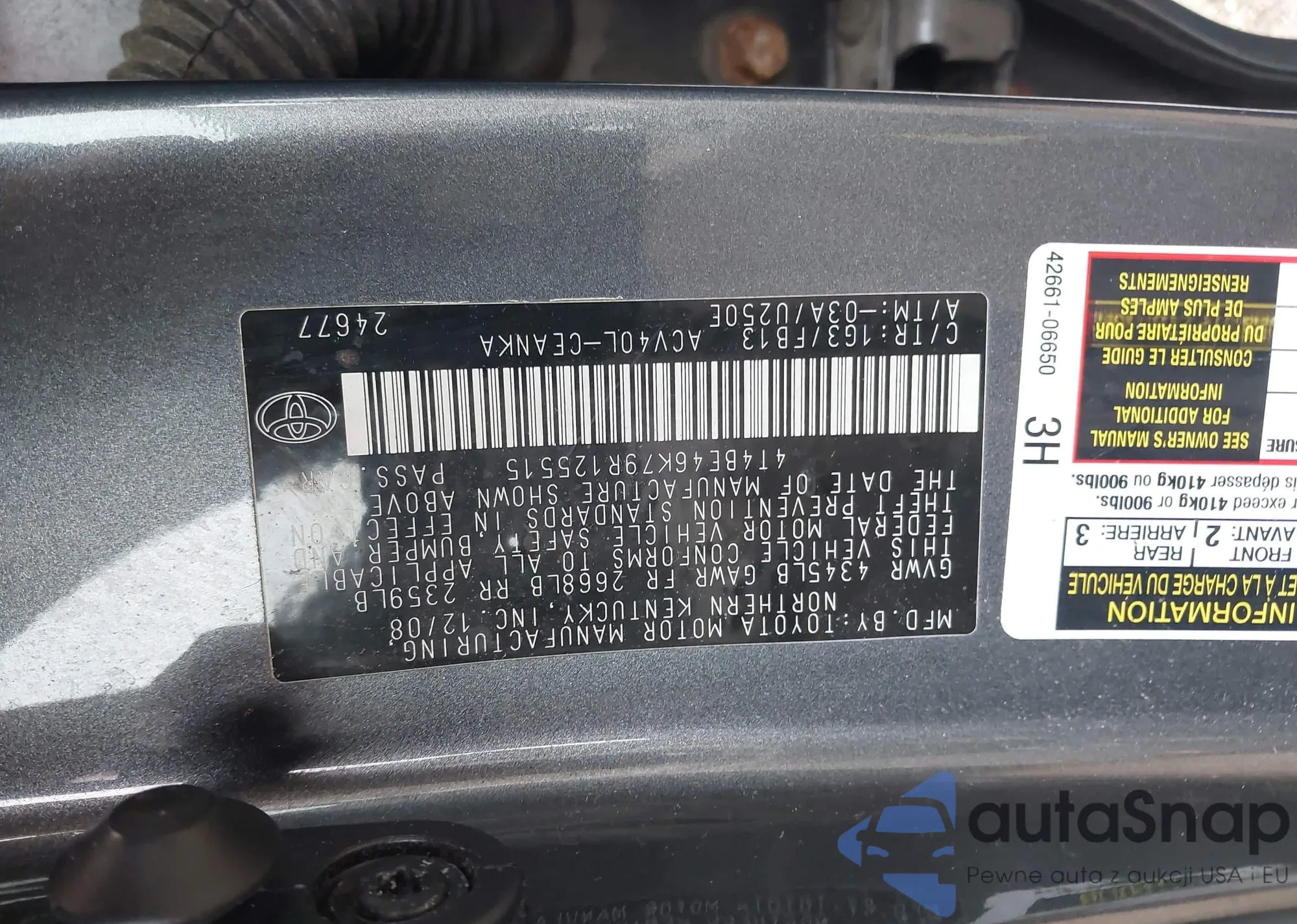 LOT: 44526504 VIN: 4T1BB46K57U015286