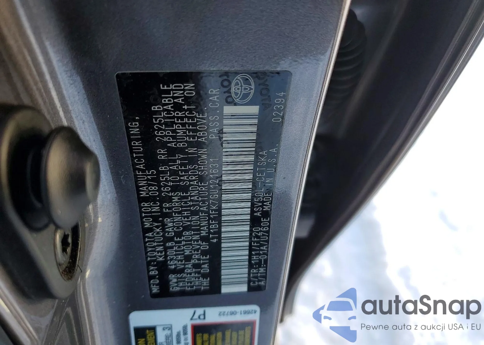 • VIN 4T1BF1FK7GU121631