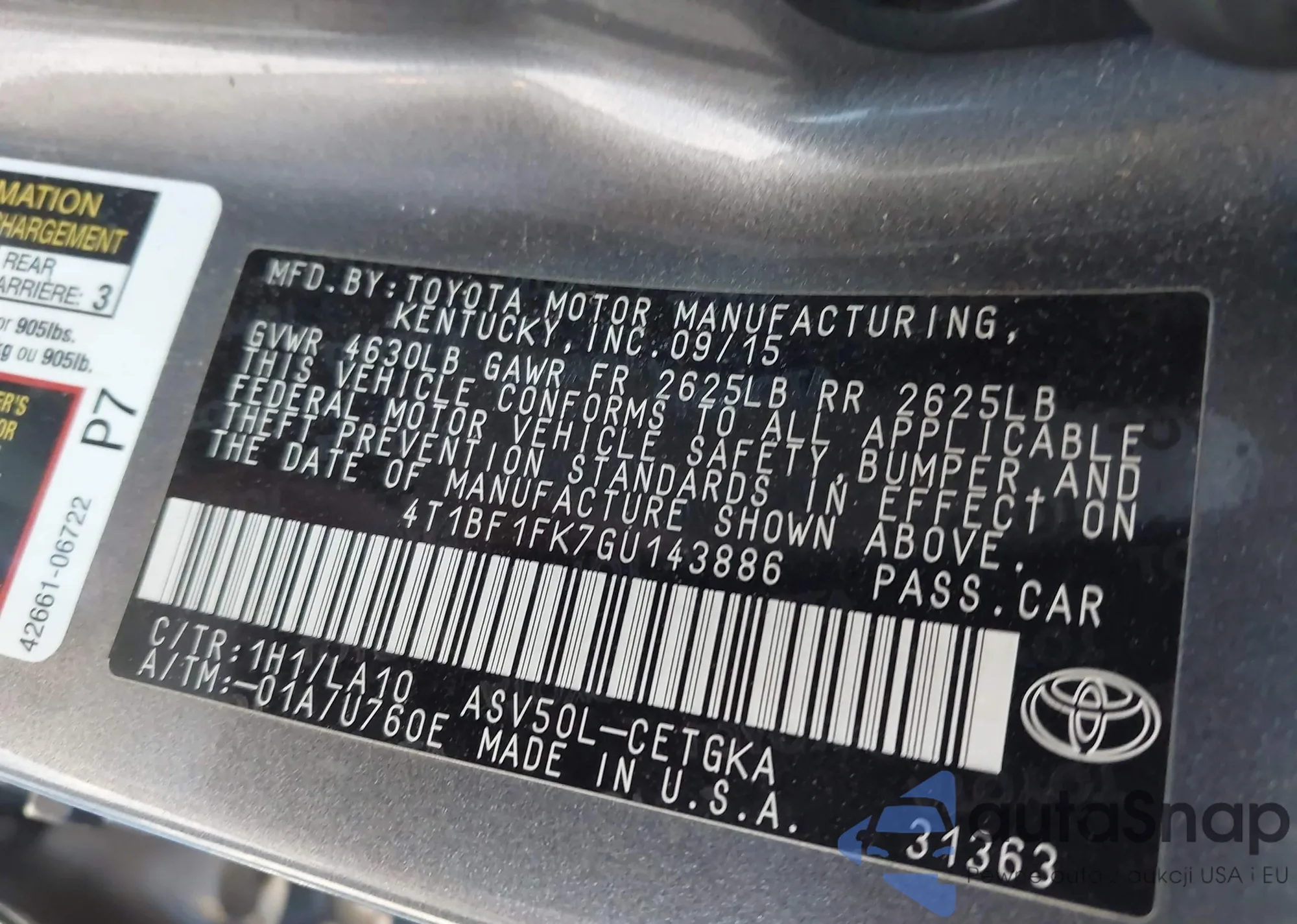 • VIN 4T1BF1FK7GU143886