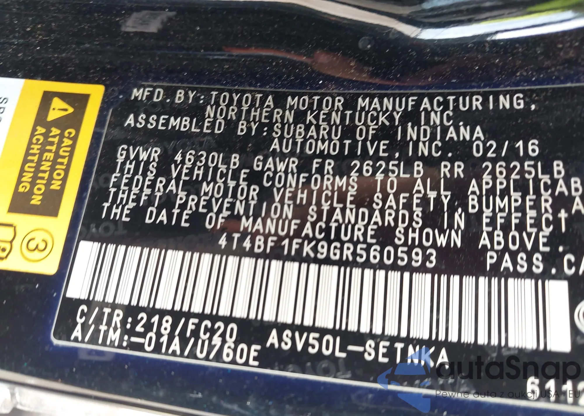 • VIN 4T4BF1FK9GR560593