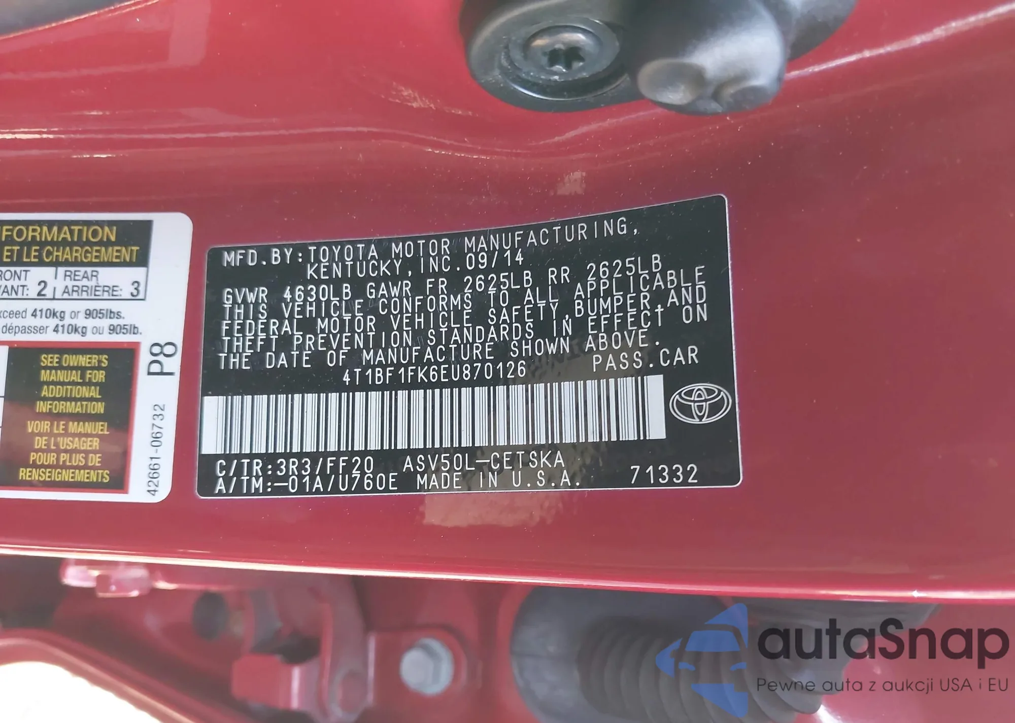 • VIN 4T1BF1FKXEU813802