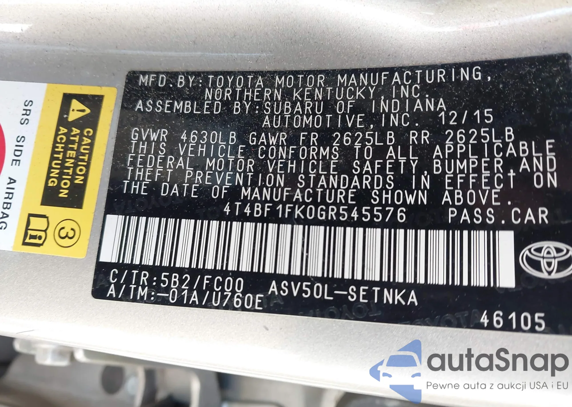 • VIN 4T4BF1FK0GR545576