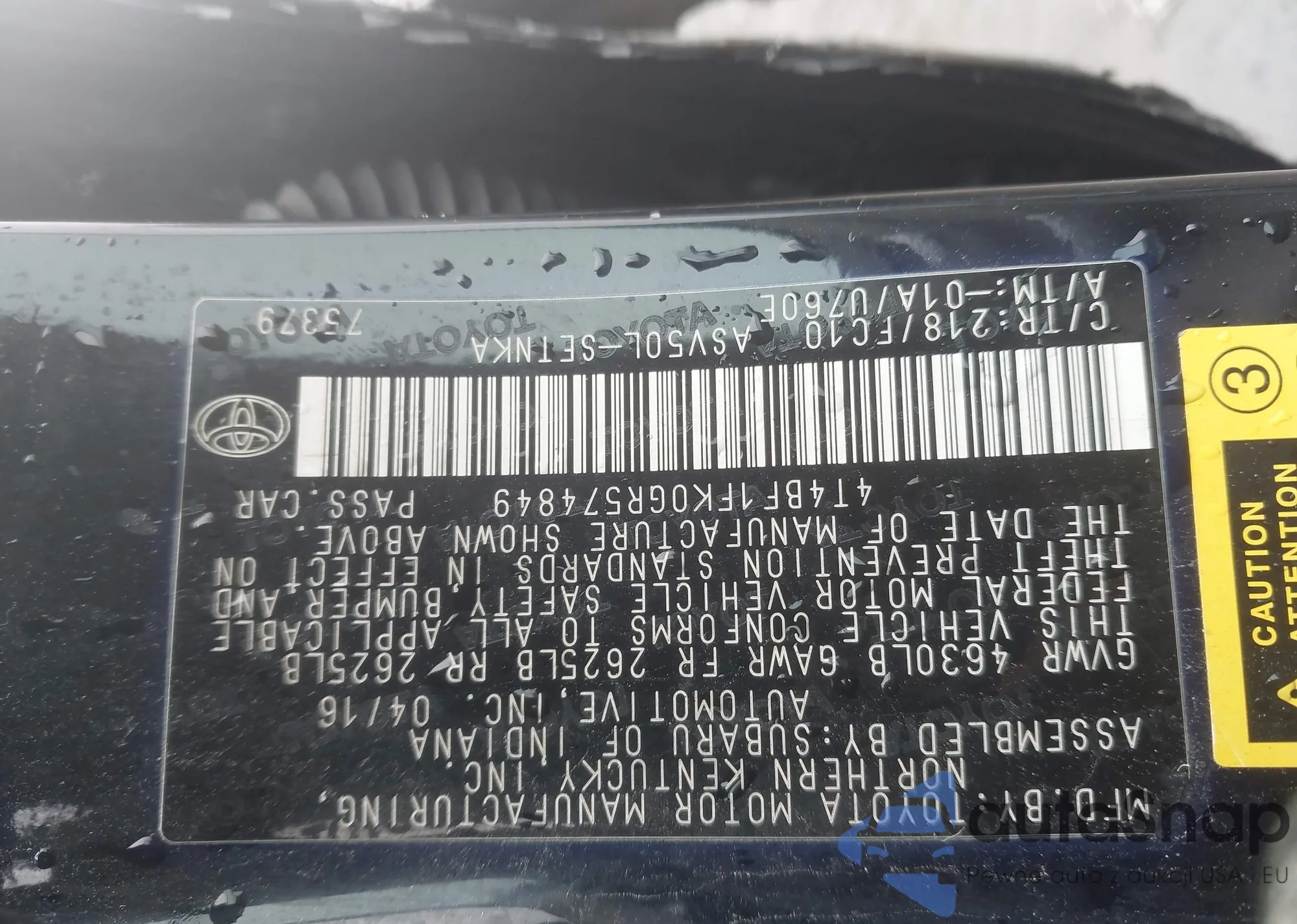 • VIN 4T1BF1FK0FU898103