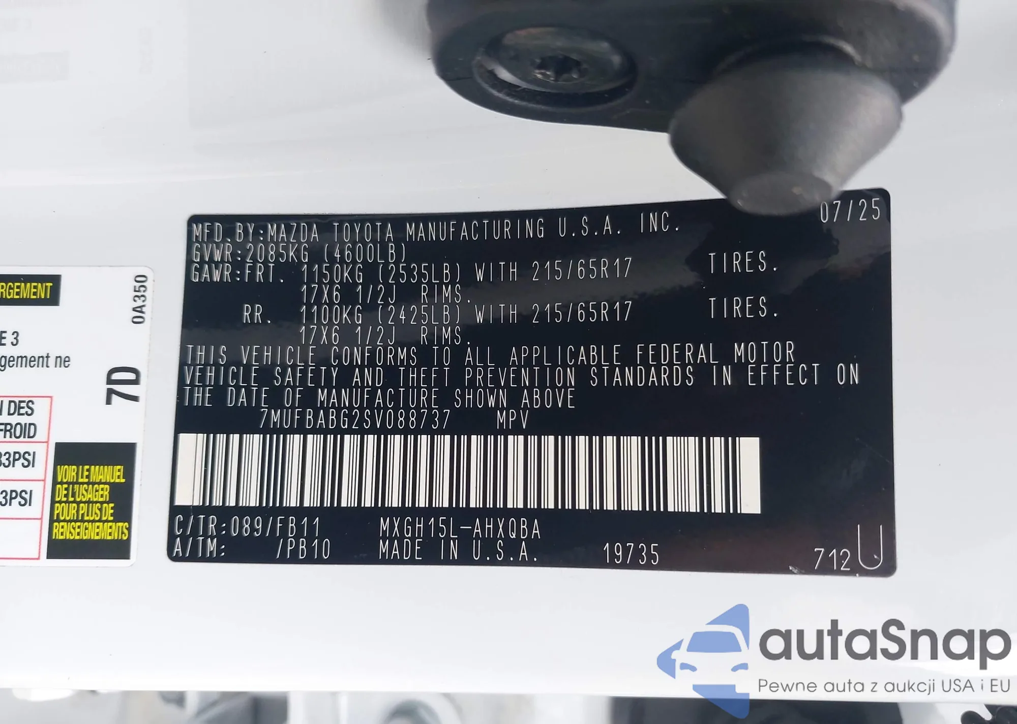 • VIN 7MUFBABG2SV088737