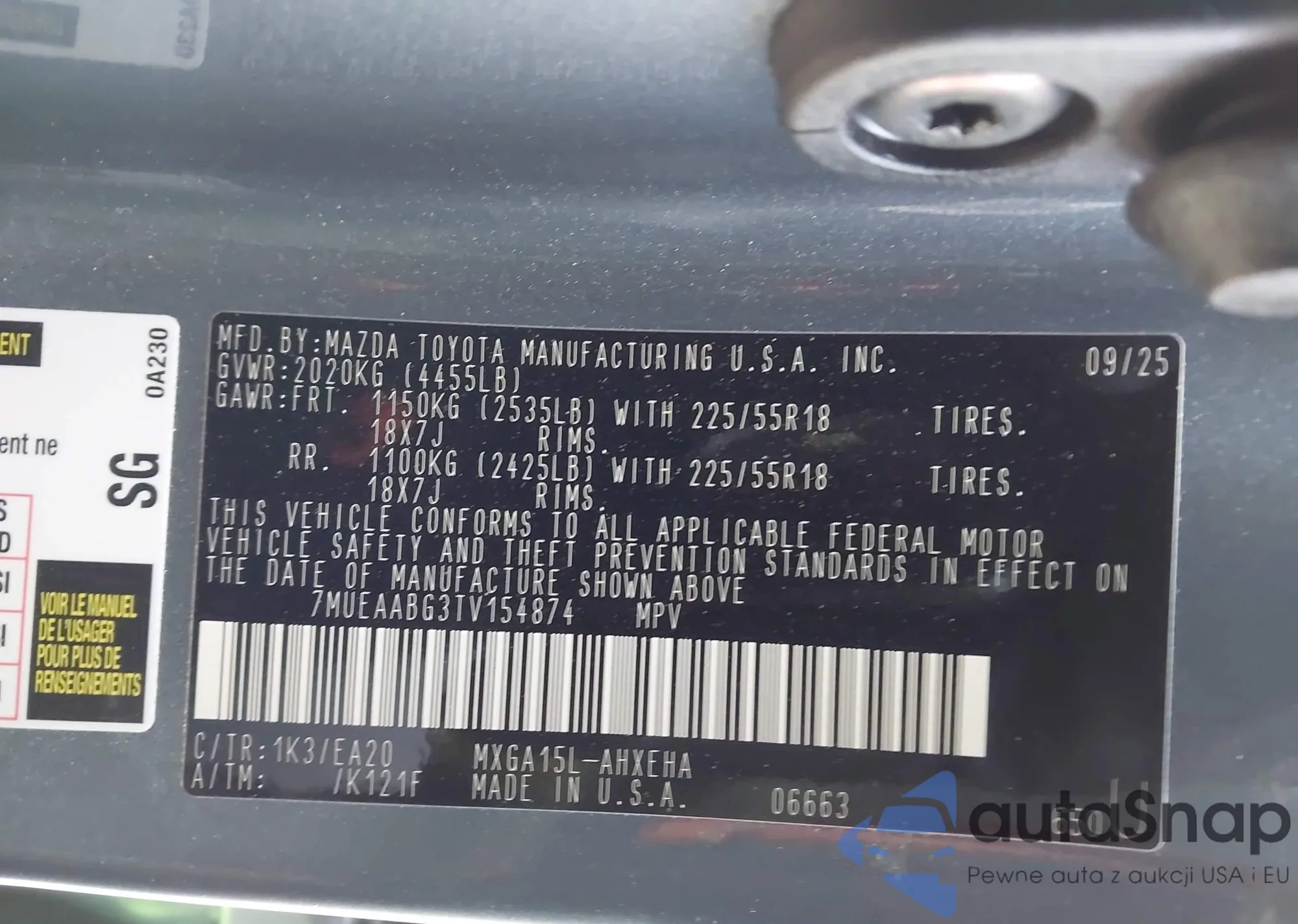 • VIN 7MUEAABG3TV154874