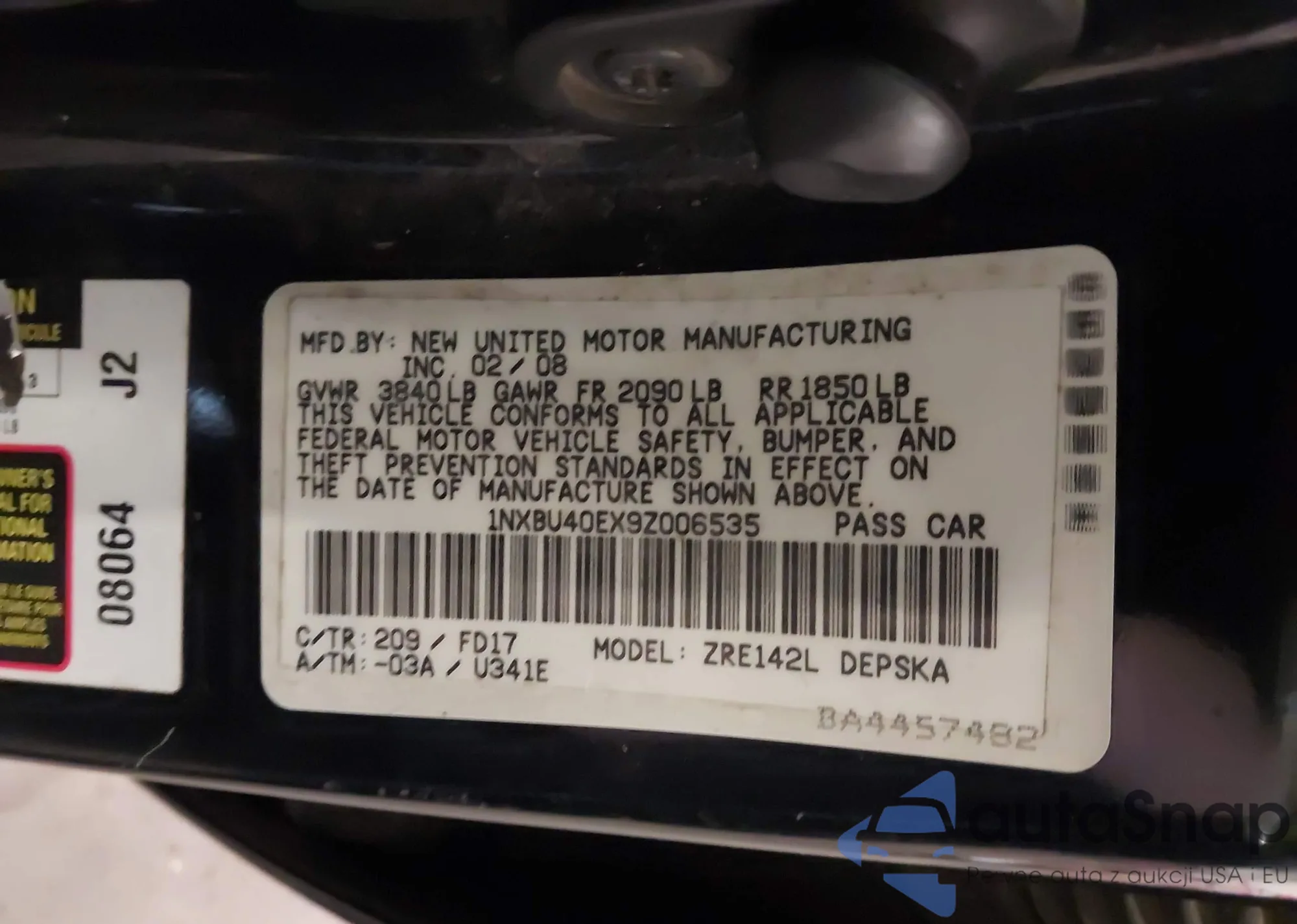 • VIN 1NXBU40EX9Z006535