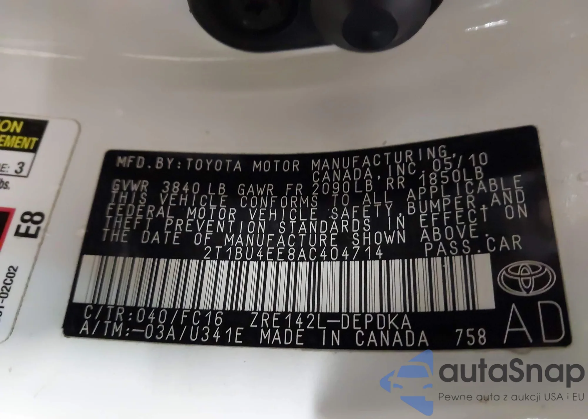 • VIN 2T1BU4EE8AC404714