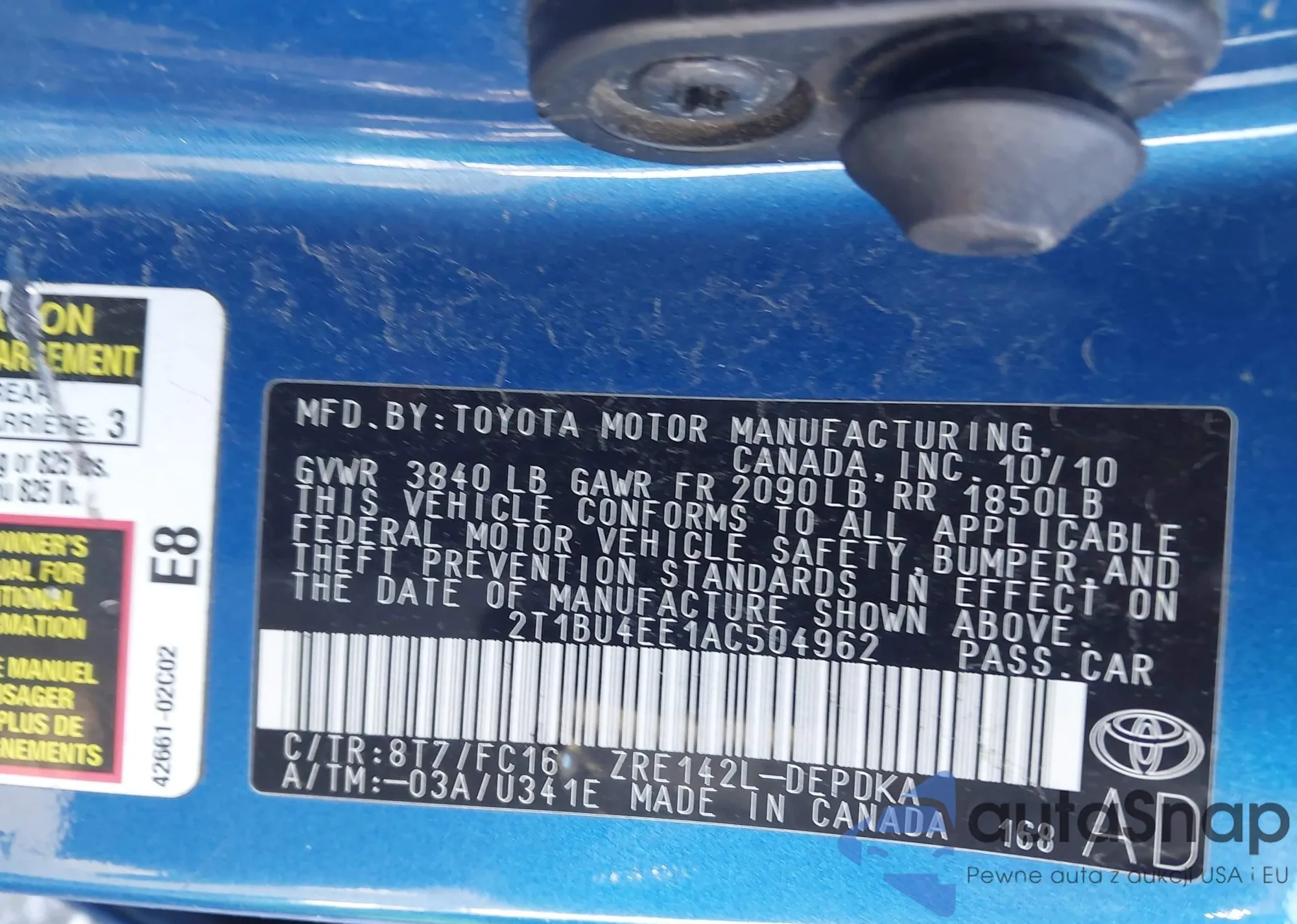 • VIN 2T1BU4EE1AC504962