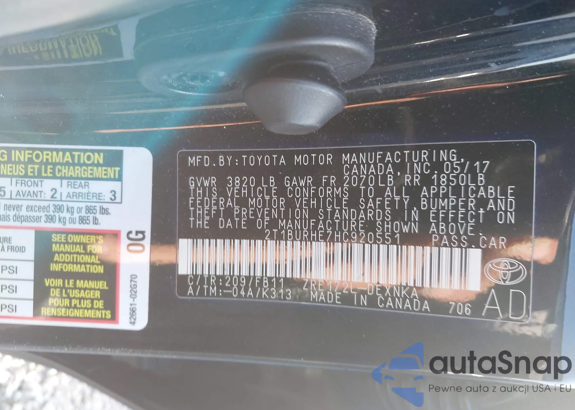 • VIN 2T1BURHE7HC920551
