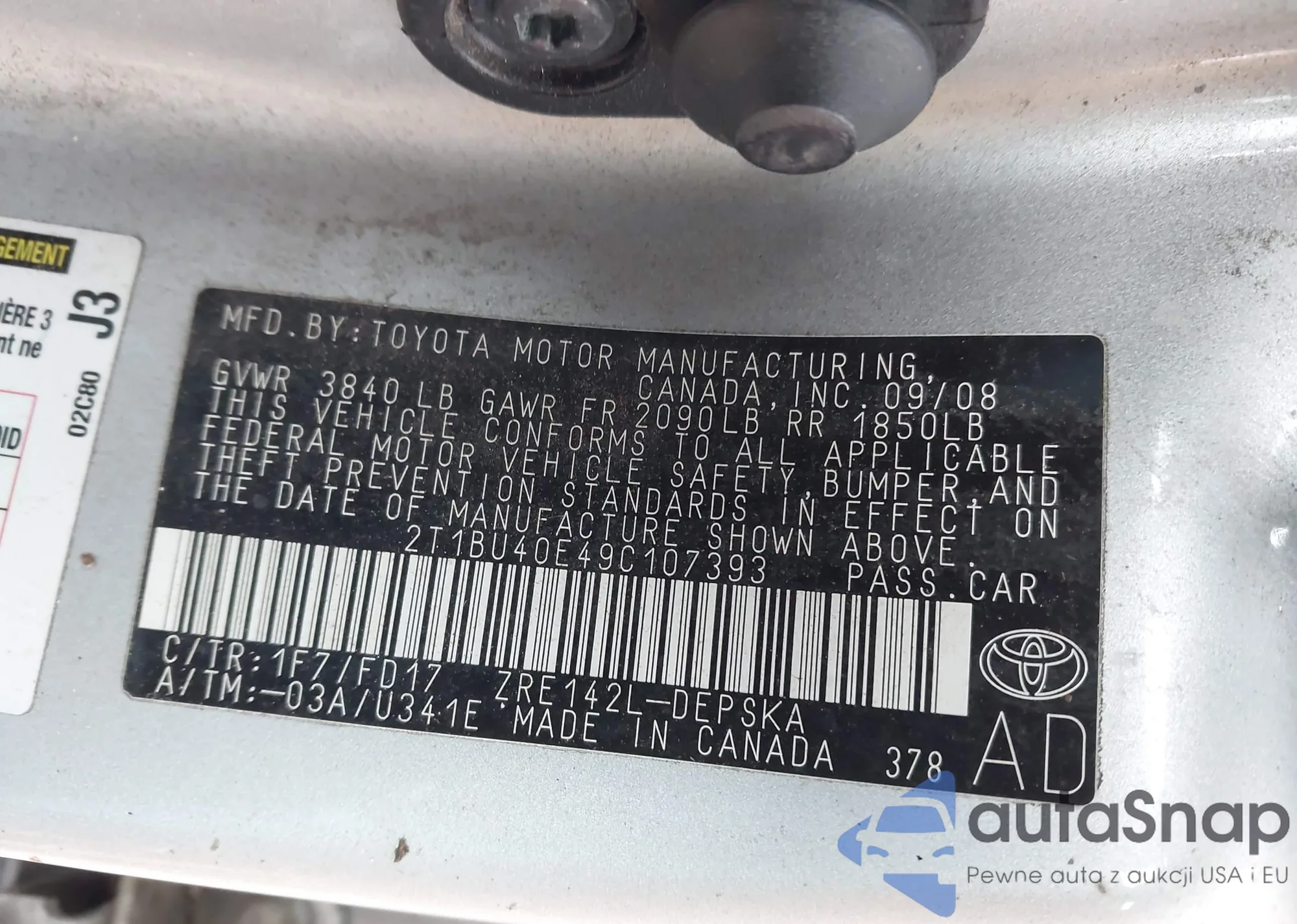 • VIN 2T1BU40E49C107393