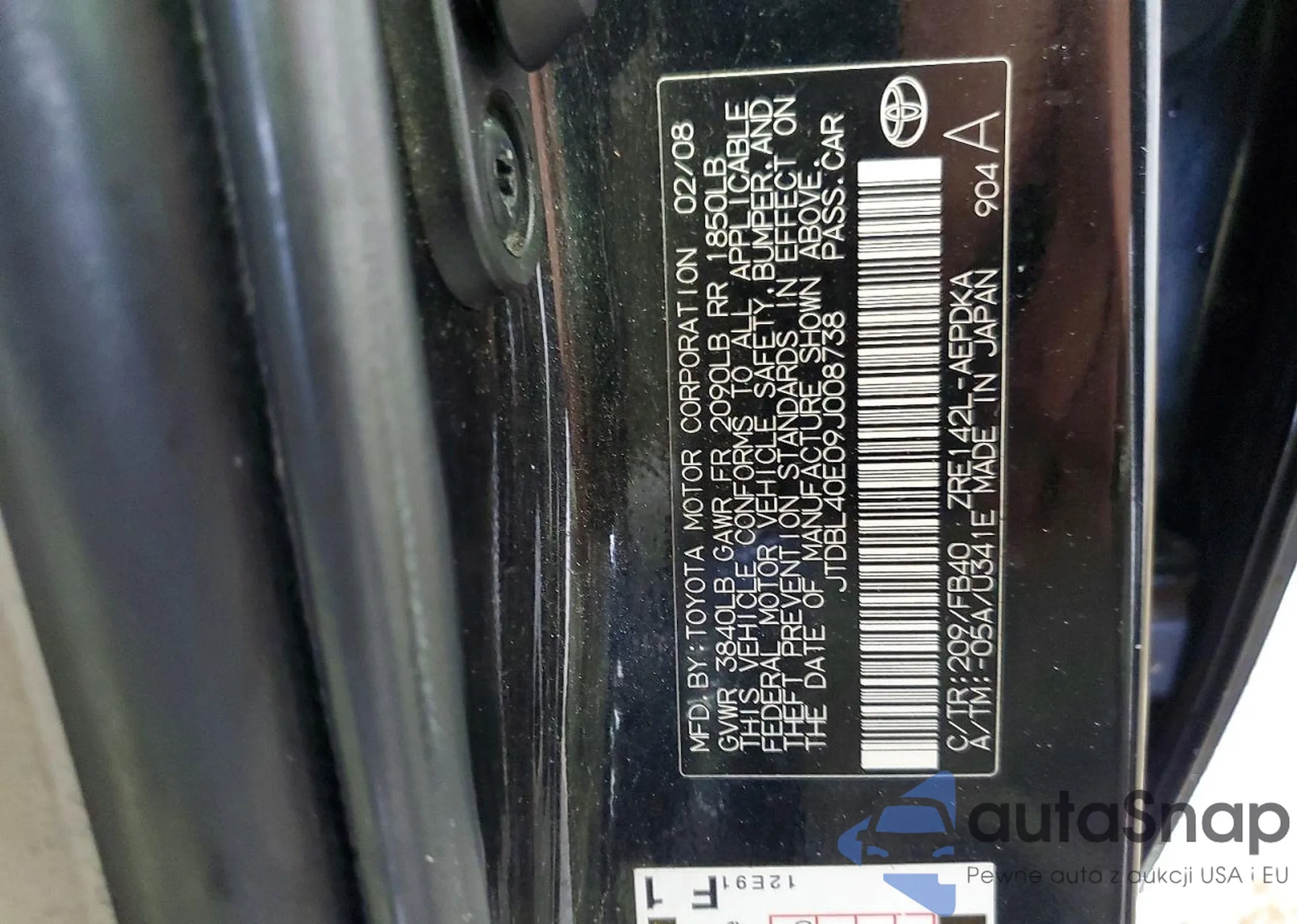 LOT: 99795325 VIN: JTDBL40E09J008738