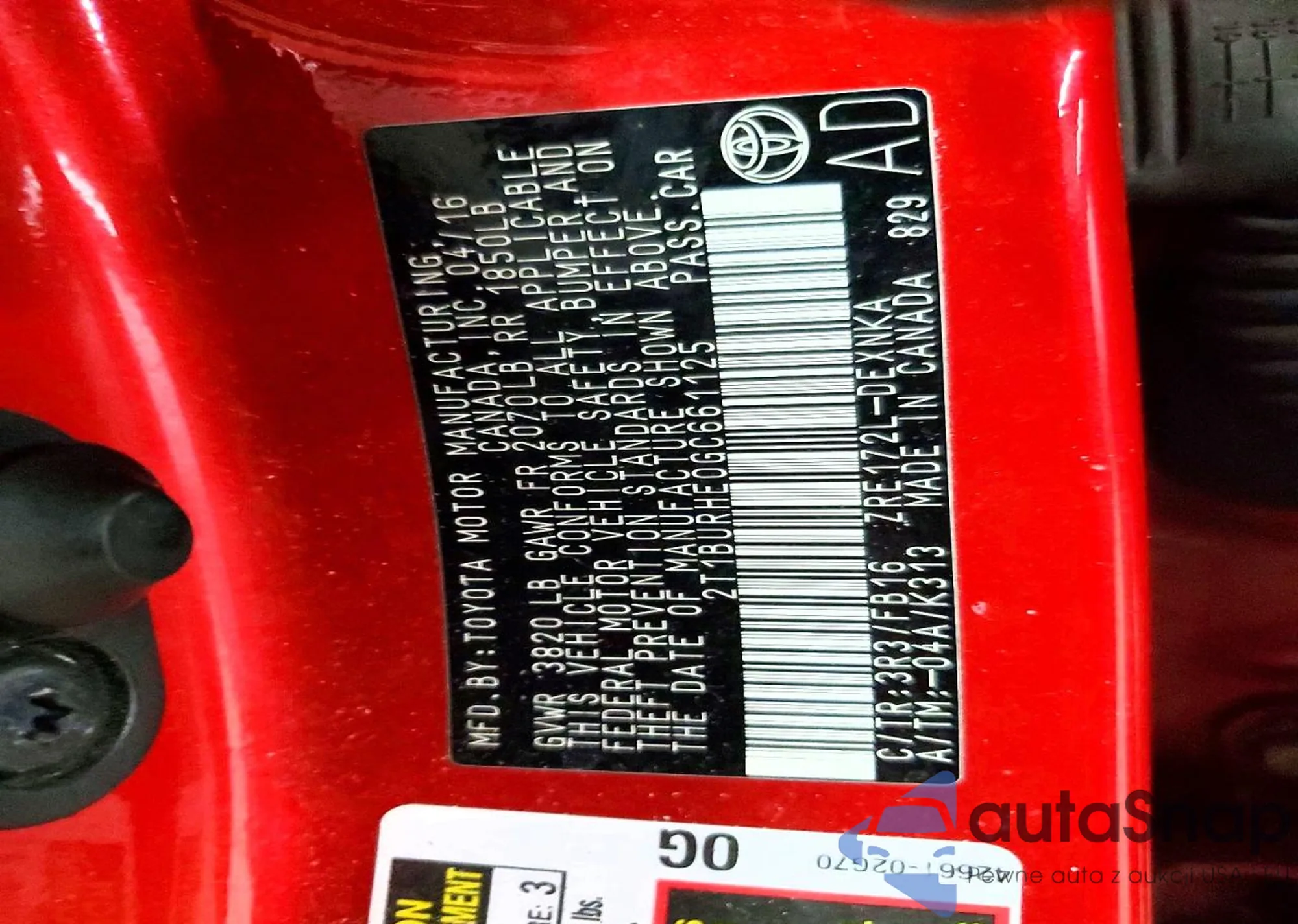 LOT: 76194505 VIN: 2T1BURHE0GC661125